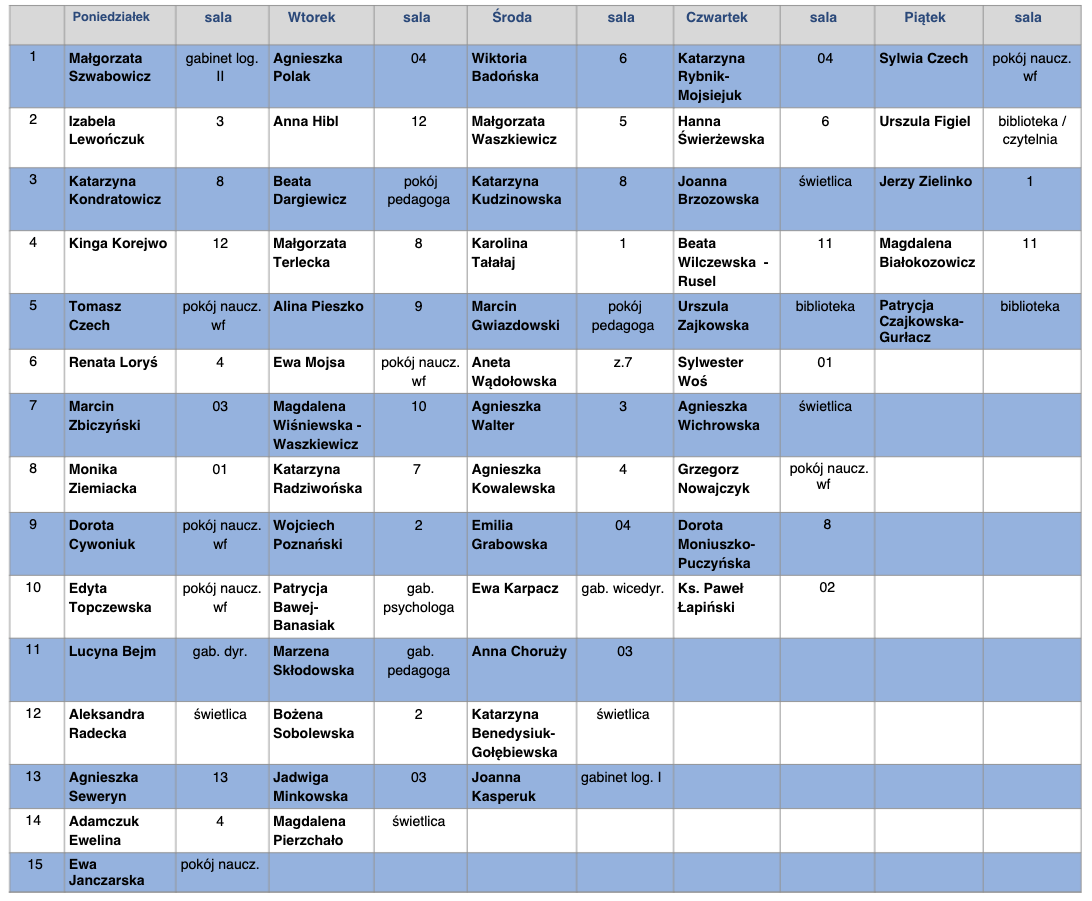 Rodzice umawiają się indywidualnie z danym nauczycielem na dzień i godzinę za pomocą dziennika elektronicznego.