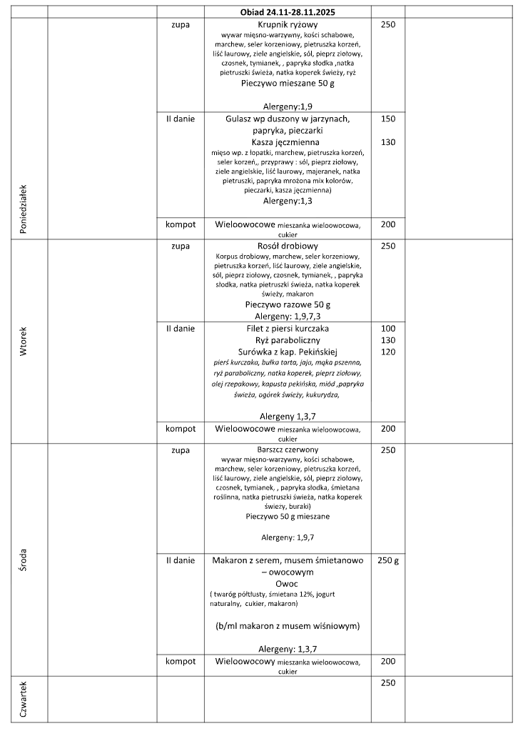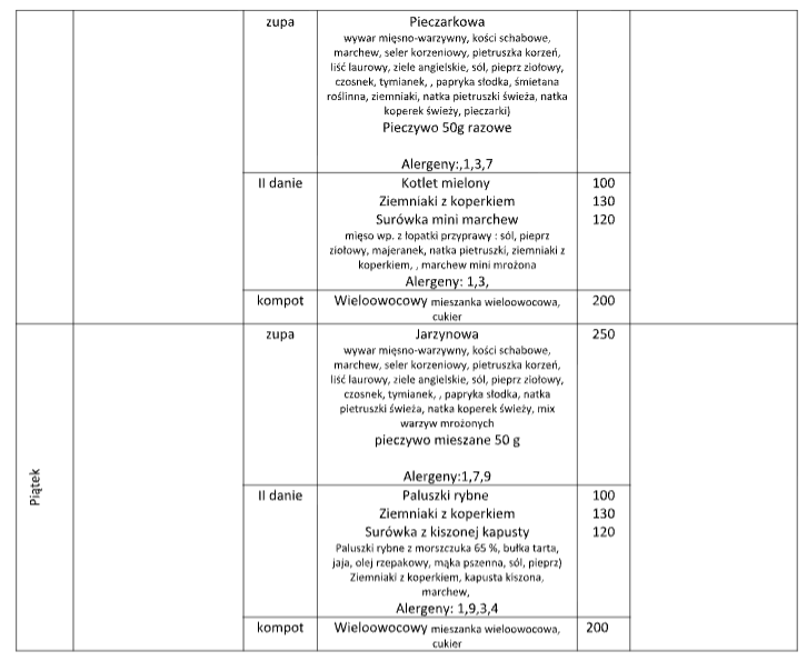 Aktualny jadłospis na tydzień 24 listopada - 28 listopada