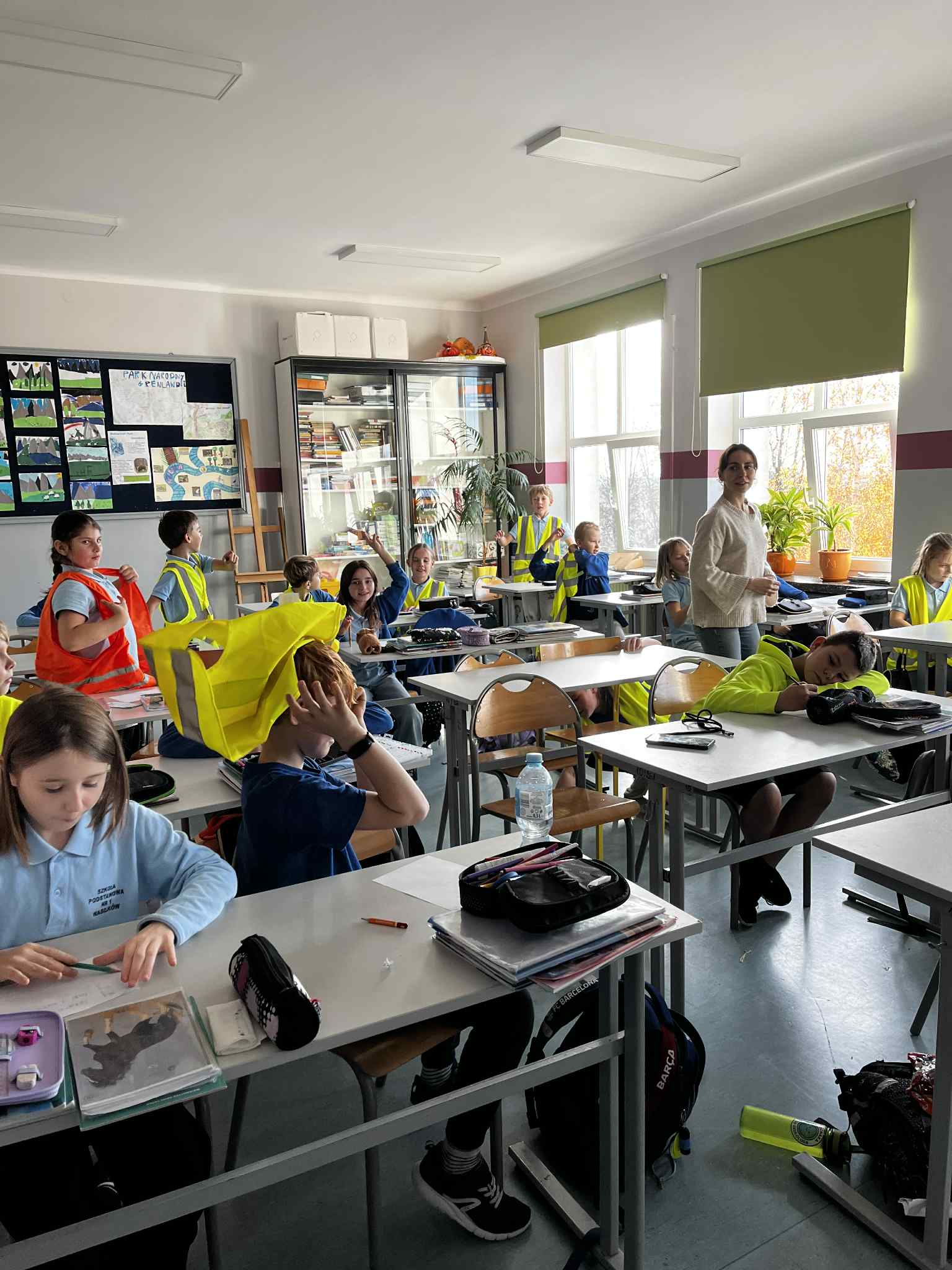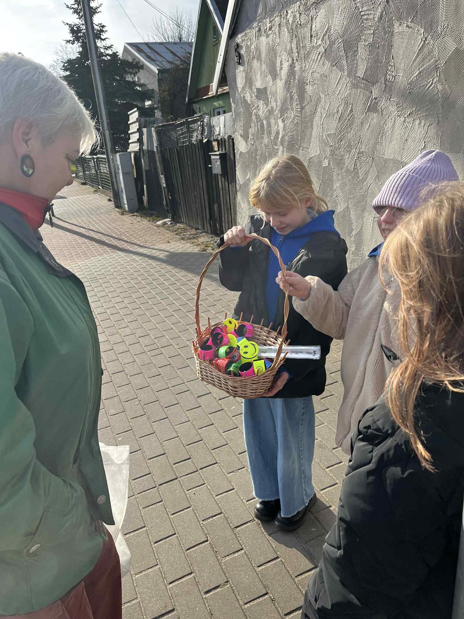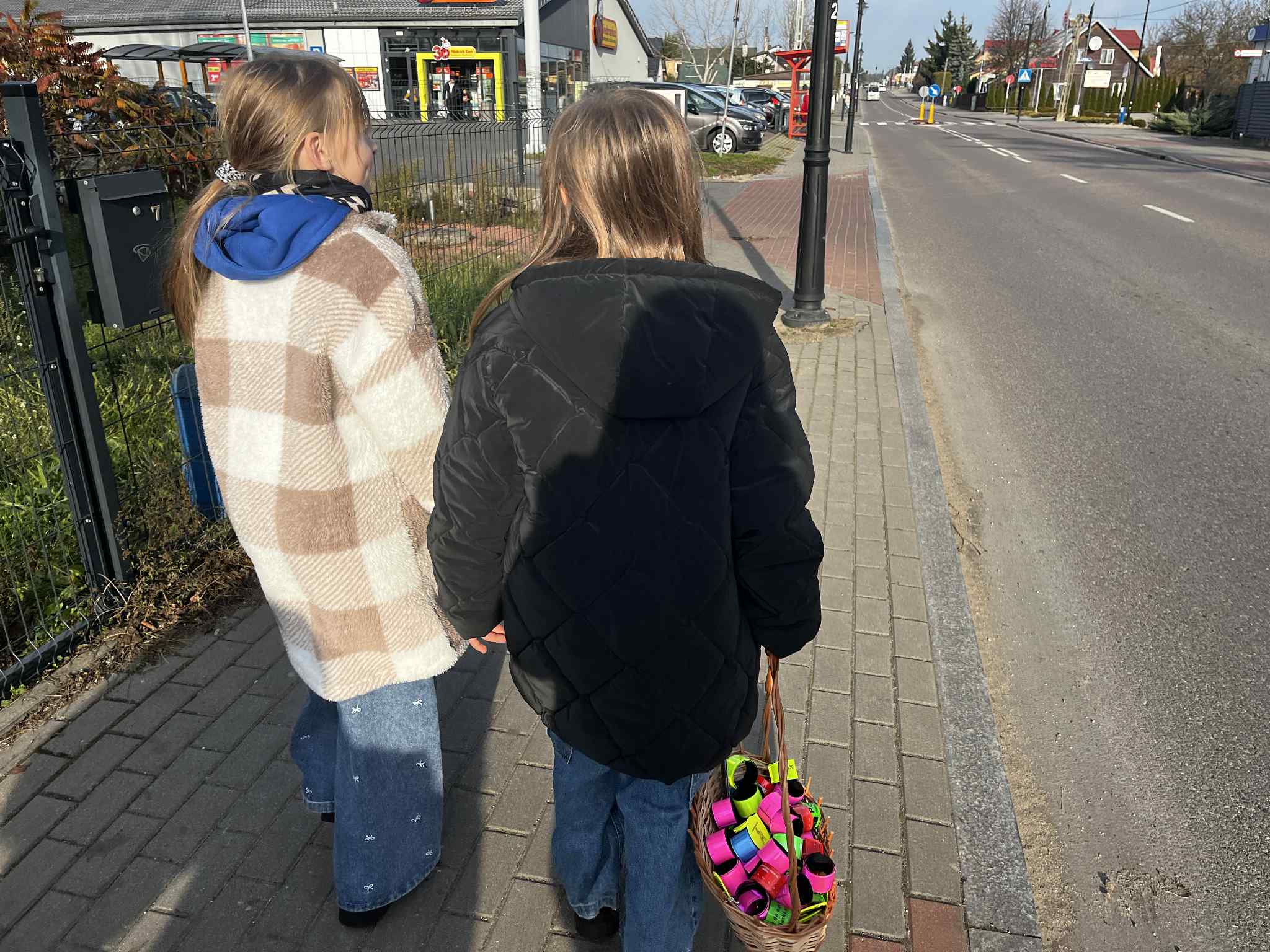 Wyruszyliśmy również na spacer po Wasilkowie, podczas którego uczniowie rozdawali odblaski seniorom i przechodniom. To była świetna okazja, by porozmawiać o bezpieczeństwie i zachęcić mieszkańców do noszenia elementów odblaskowych po zmroku.