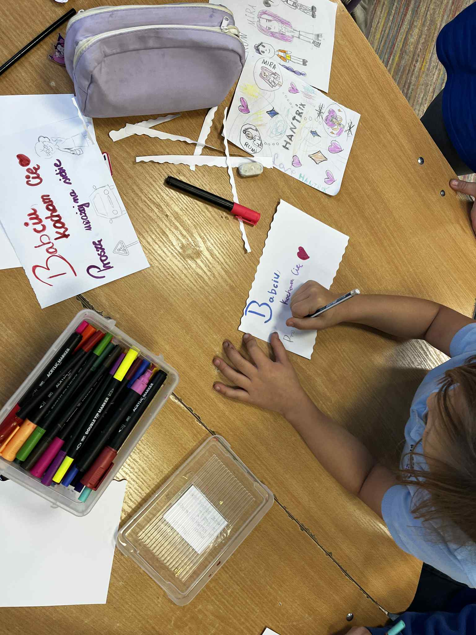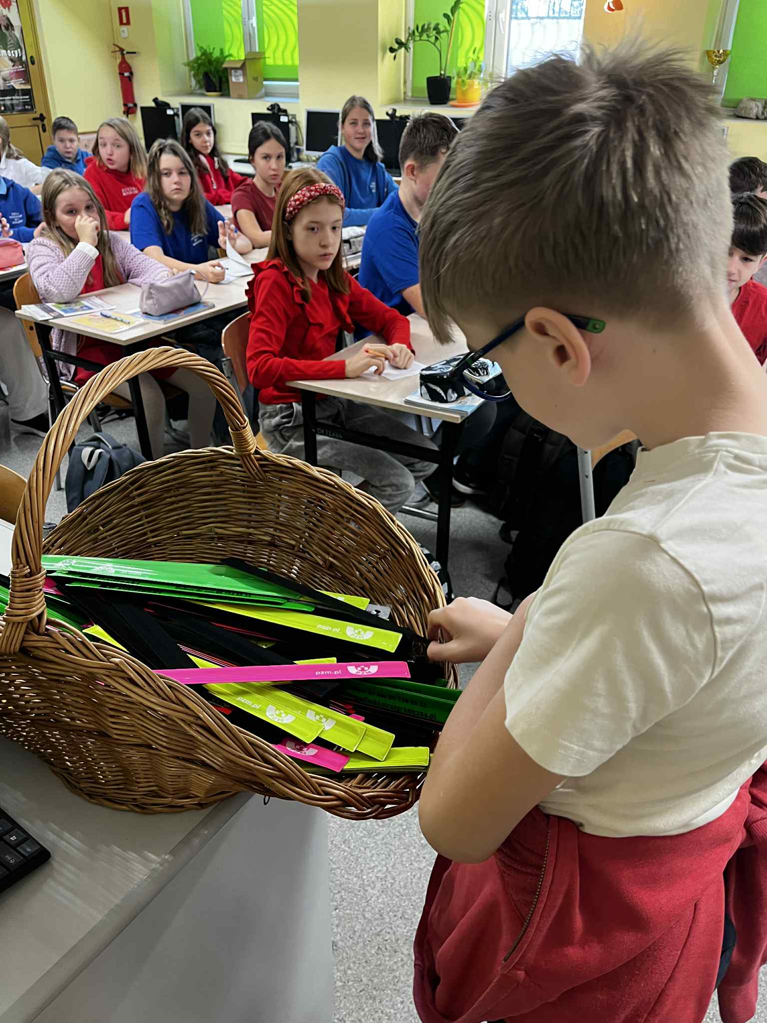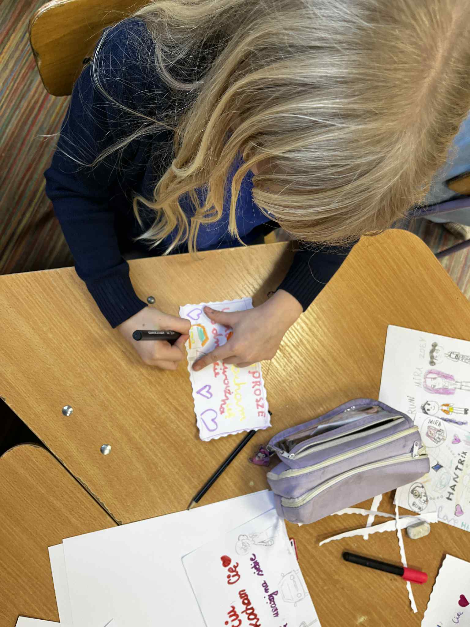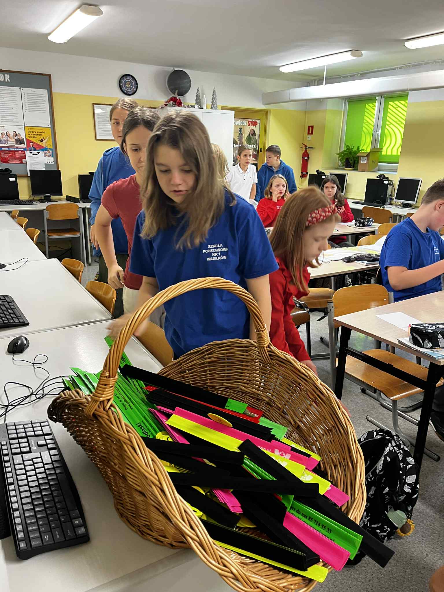 Nasze działania nie ograniczyły się tylko do terenu szkoły. Uczennice klasy 7 odwiedziły Wasilkowskie Centrum Seniora, gdzie przeprowadziły zajęcia o bezpieczeństwie pieszych i wręczyły uczestnikom odblaski. Najmłodsi uczniowie z kolei przygotowali pocztówki dla babć z przesłaniem „Babciu, kocham Cię – uważaj na drodze”, przypominając, że troska o bezpieczeństwo nie ma wieku.