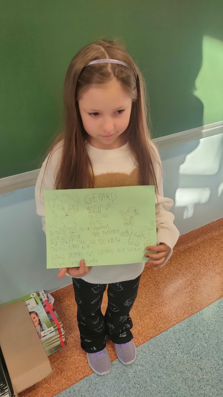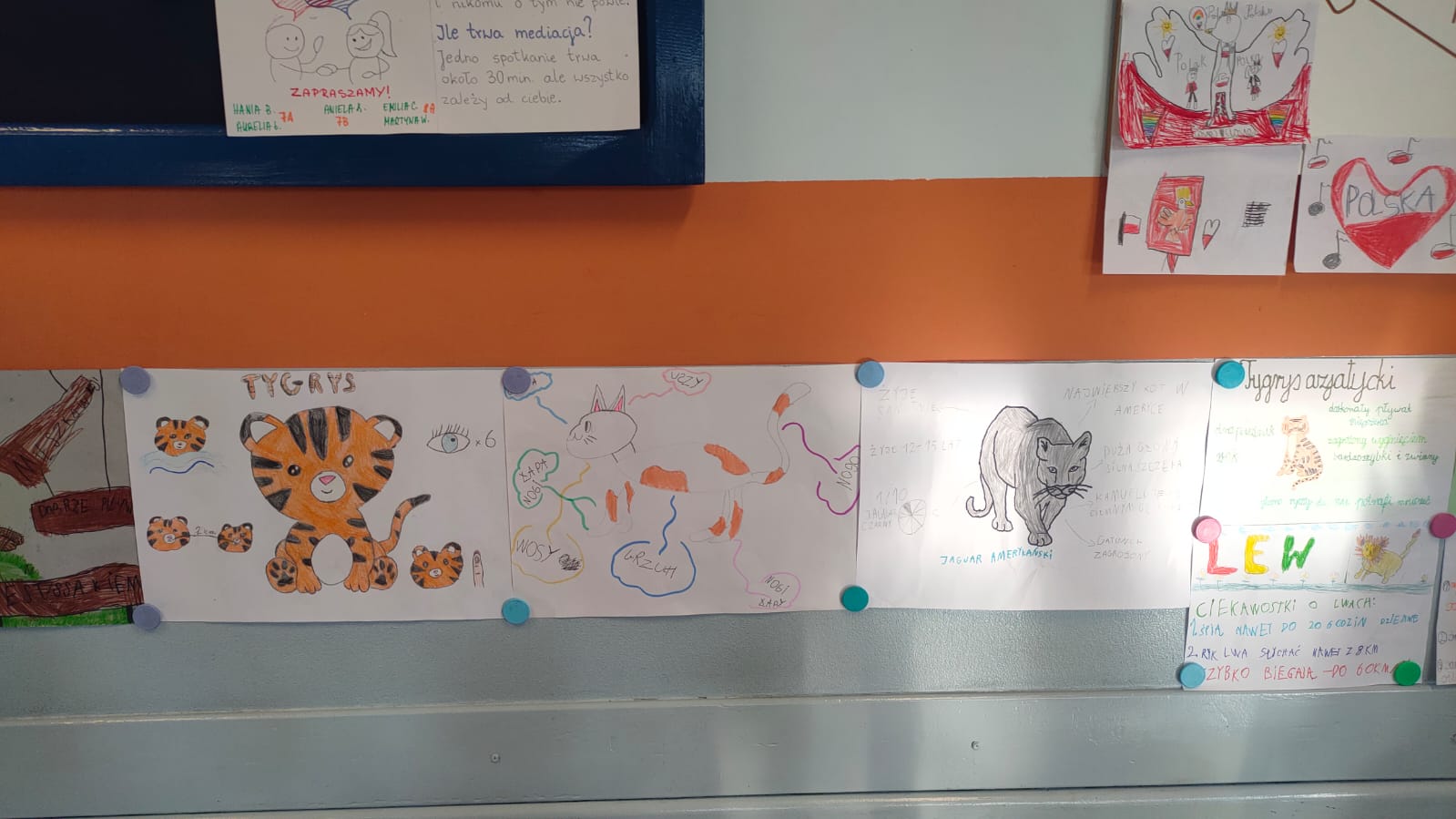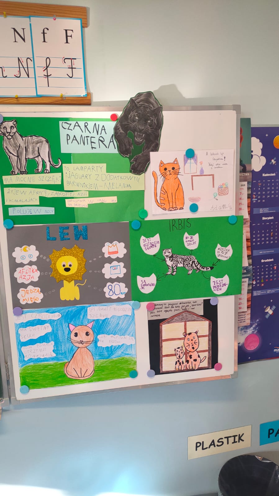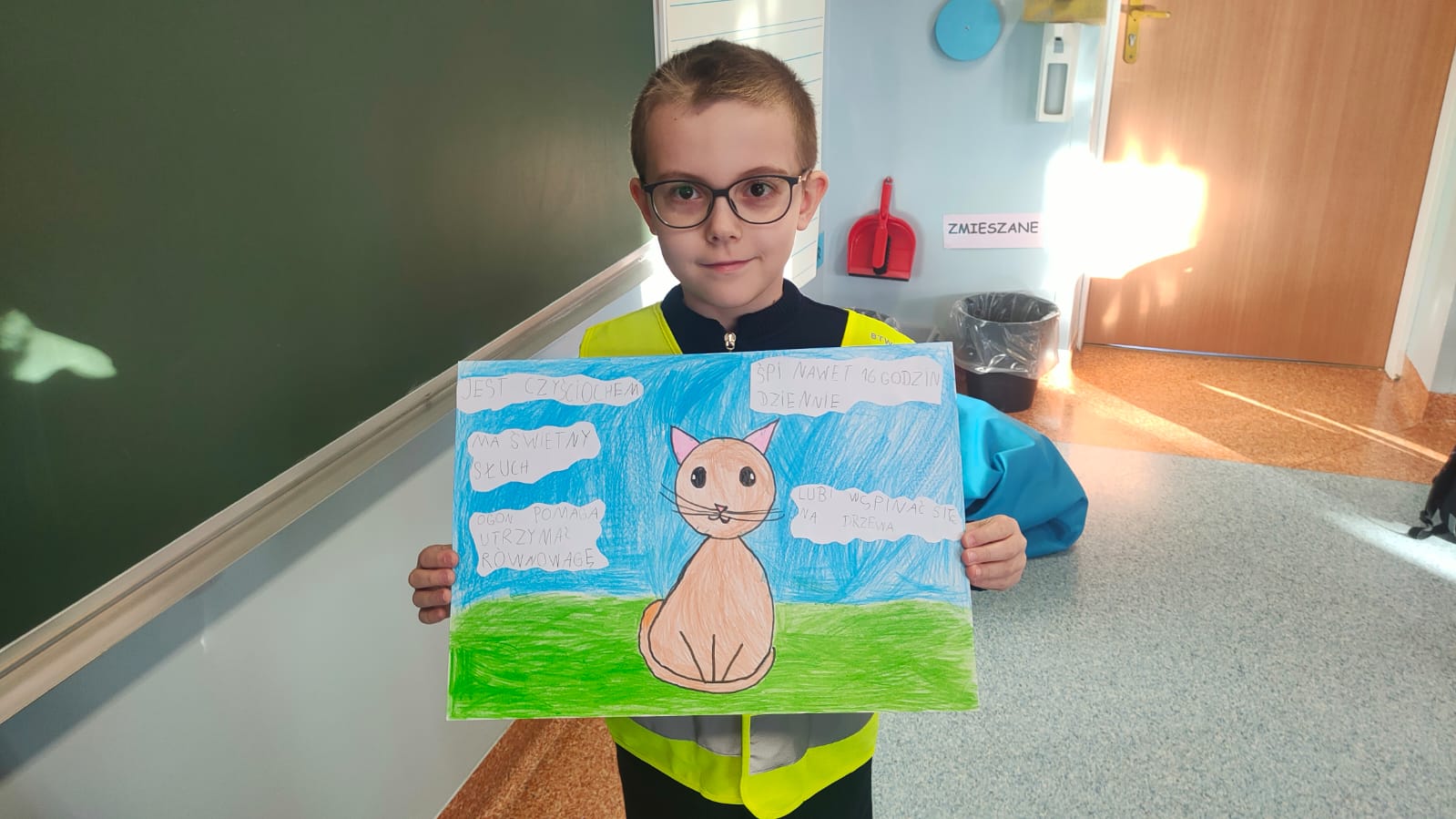 Uczniowie klasy 1A po raz pierwszy zmierzyli się z projektem edukacyjnym. Tematem ich pracy był kot. Każde dziecko mogło wybrać dowolne zwierzę spośród różnych ras i gatunków kotów domowych i dzikich. Zadaniem uczniów było narysowanie kota przygotowanie ciekawostek na jego temat oraz zaprezentowanie pracy przed klasą.