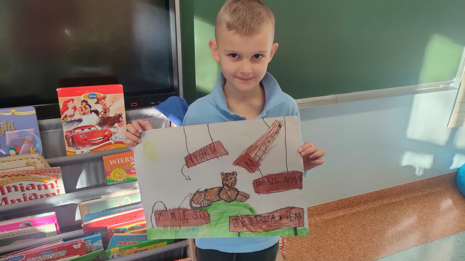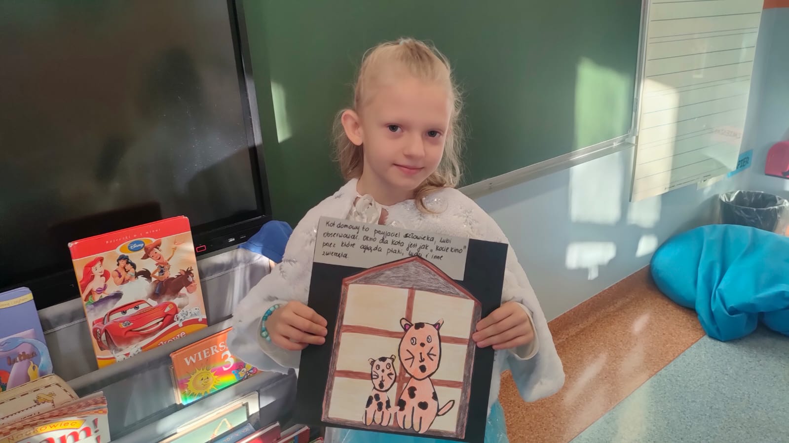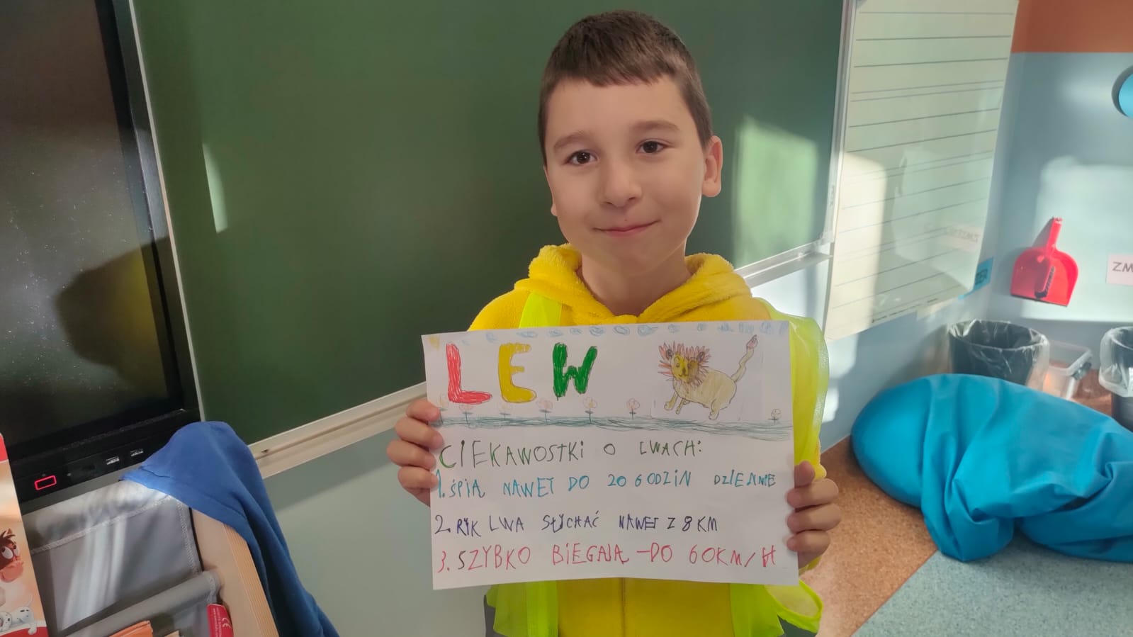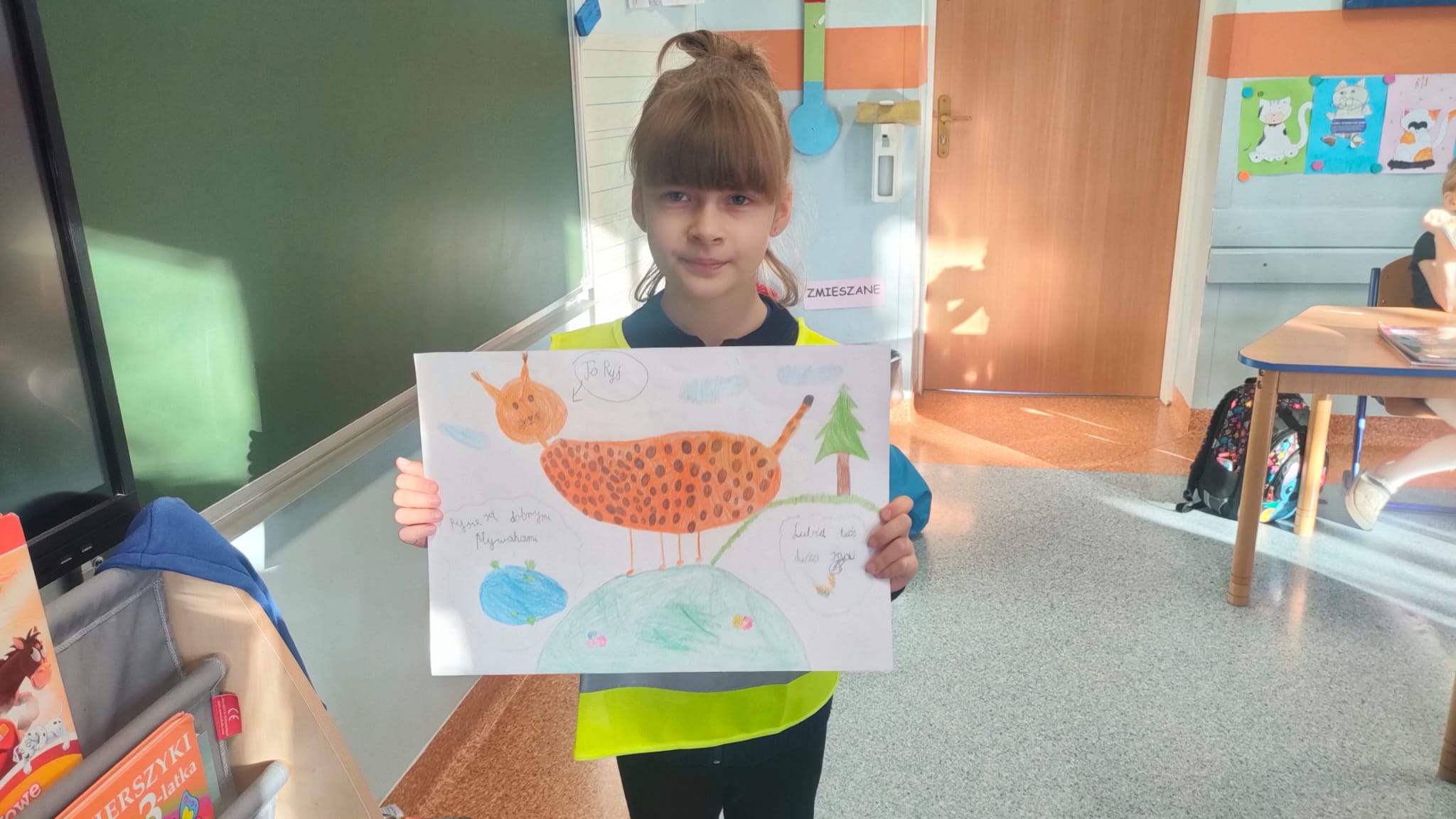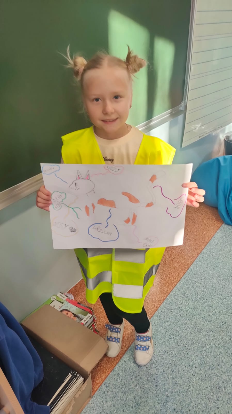 Uczniowie klasy 1A po raz pierwszy zmierzyli się z projektem edukacyjnym. Tematem ich pracy był kot. Każde dziecko mogło wybrać dowolne zwierzę spośród różnych ras i gatunków kotów domowych i dzikich. Zadaniem uczniów było narysowanie kota przygotowanie ciekawostek na jego temat oraz zaprezentowanie pracy przed klasą.