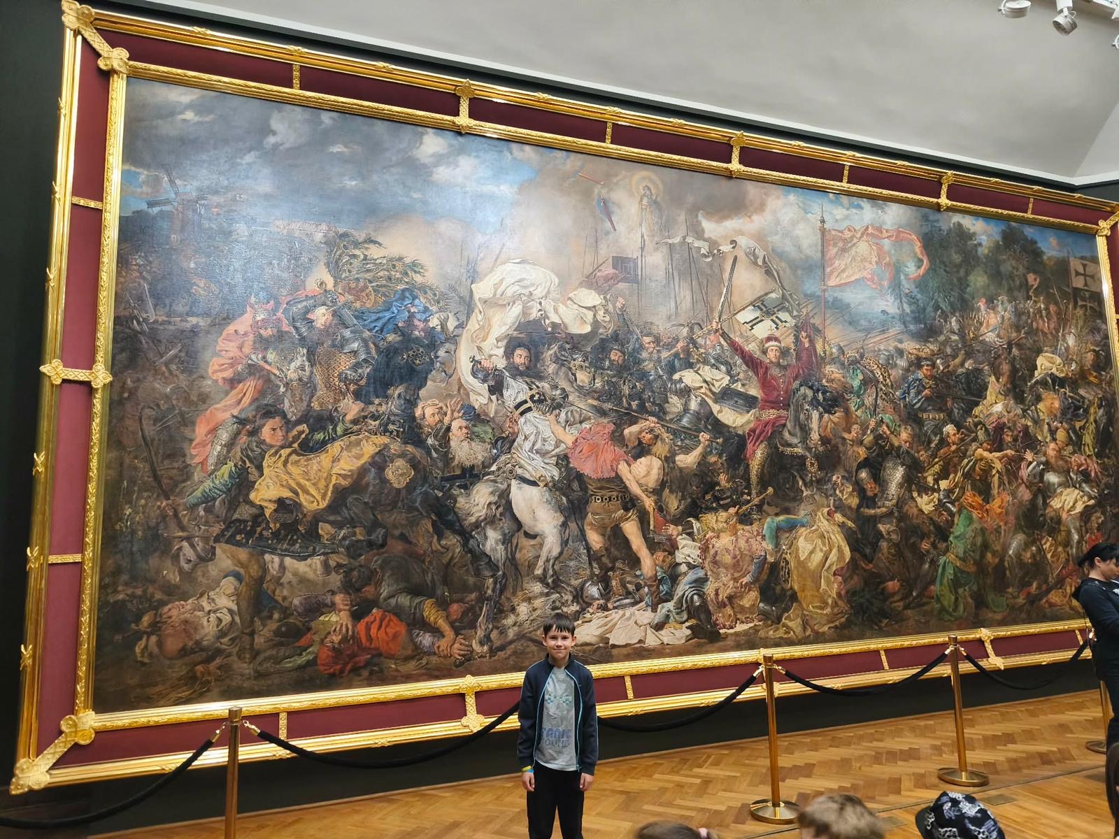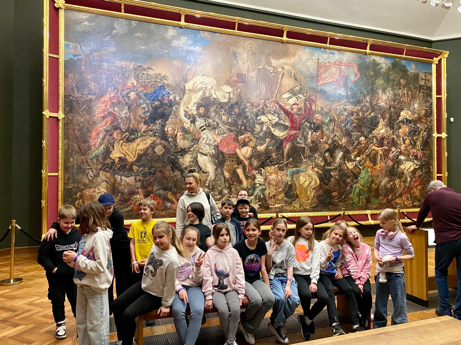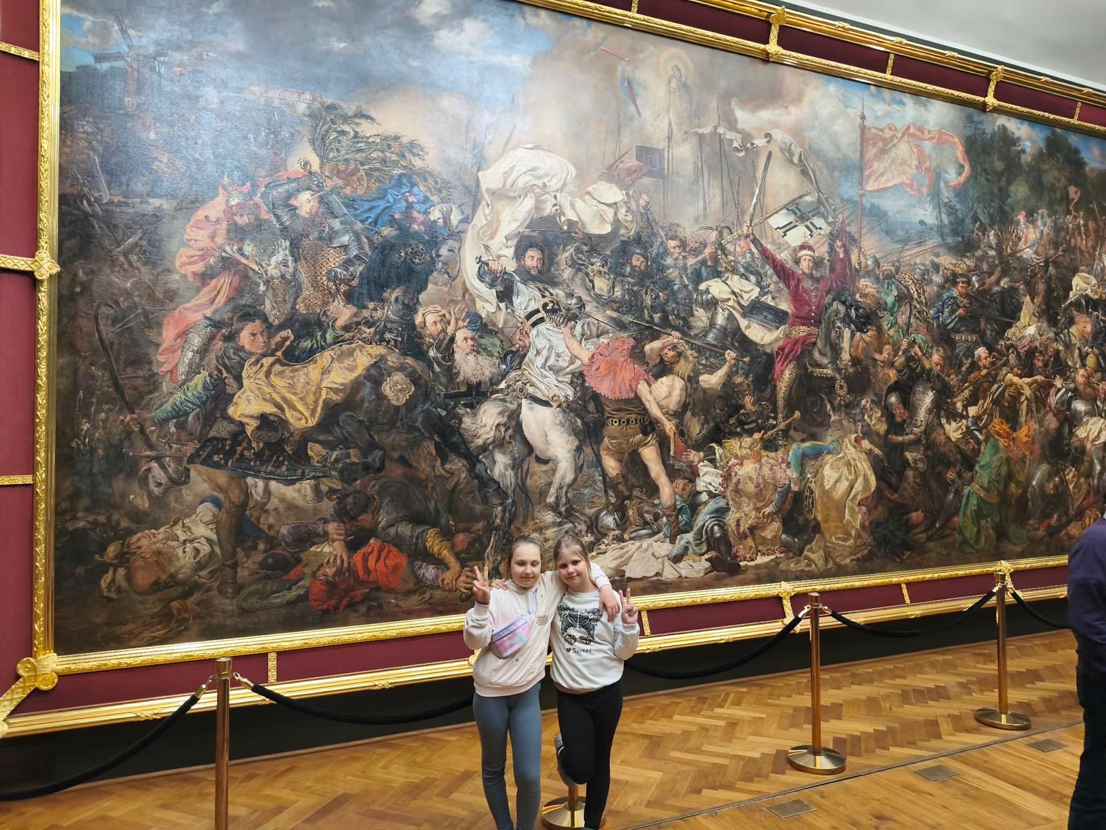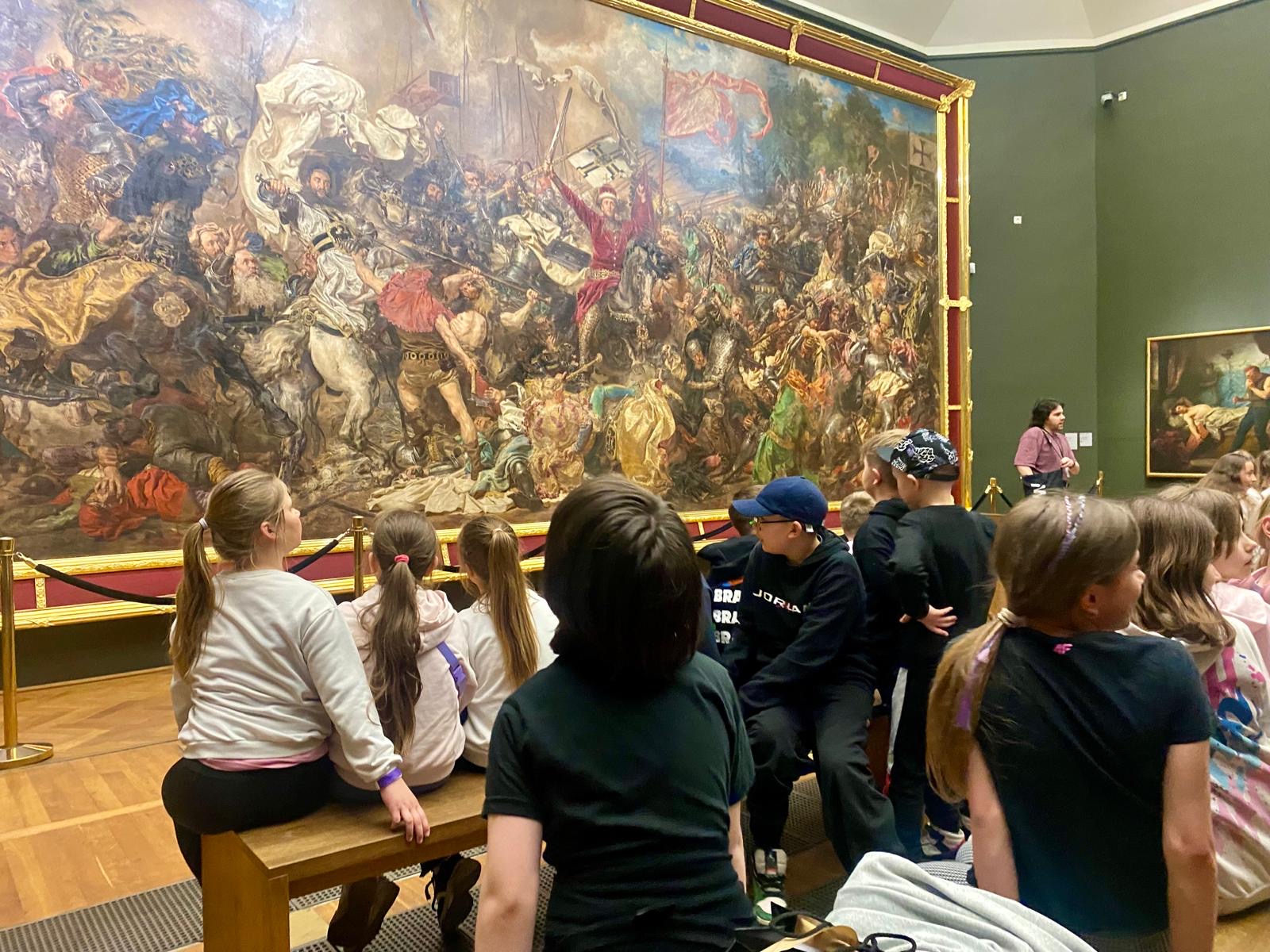 Kolejnym ważnym miejscem było Muzeum Narodowe. Uczniowie mieli okazję obejrzeć galerię malarstwa polskiego, a największe emocje towarzyszyły im podczas podziwiania słynnego obrazu „Bitwa pod Grunwaldem” autorstwa Jana Matejki. Zobaczenie tego dzieła na żywo było dla wielu spełnieniem marzeń.