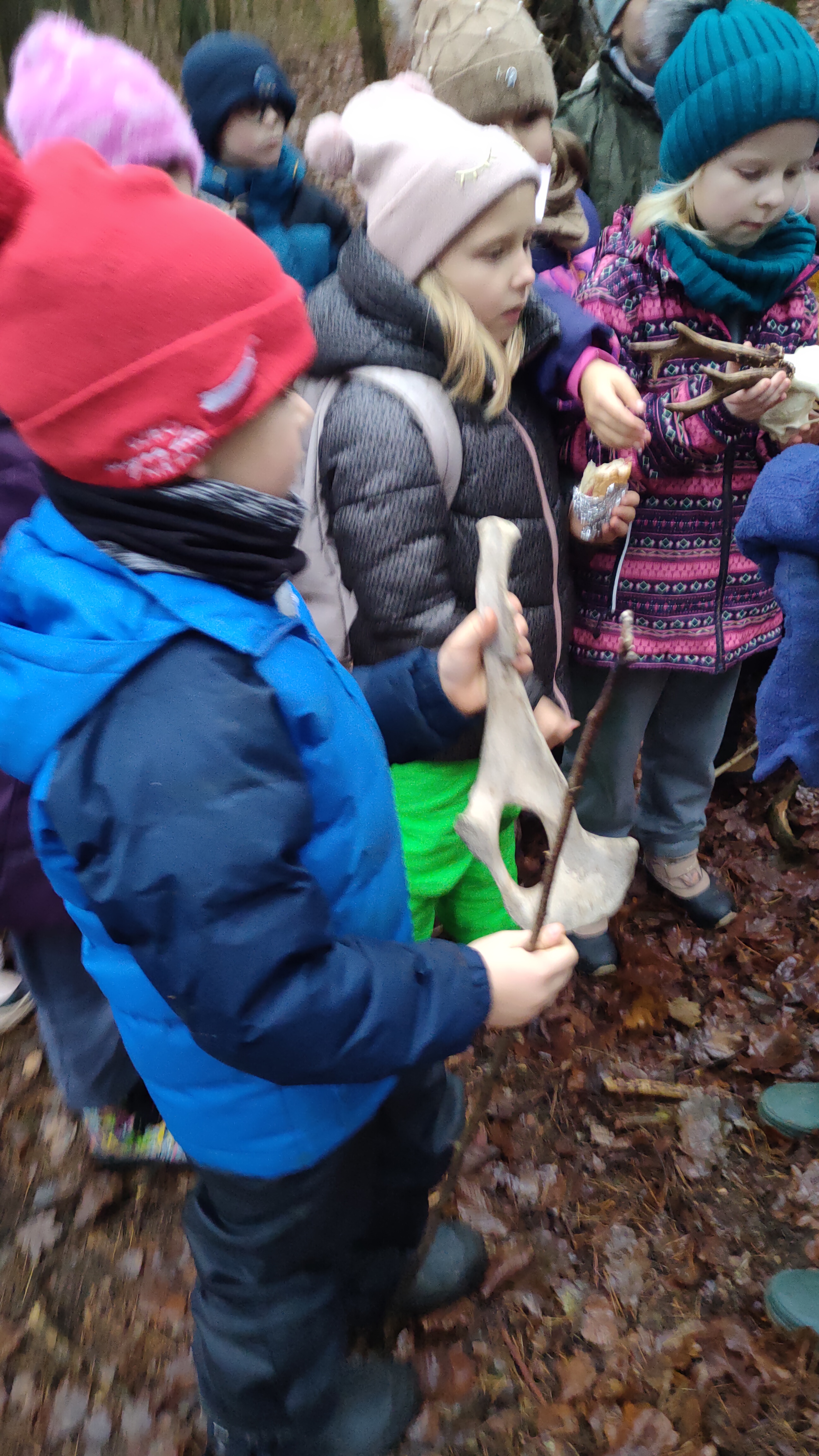 Grupa 1a miała kolejne spotkanie w ramach projektu „Leśna Banda”. Dzieci poznawały różne ślady i łapy leśnych zwierząt, a potem ruszyły w teren, by odszukać je w prawdziwym lesie. Udało się nam znaleźć kilka tropów, co wywołało ogromne emocje! Później uczniowie wspólnie zbudowali szałas, a na zakończenie przy ognisku piekli kiełbaski. To był pełen przygód i świetnej zabawy dzień!