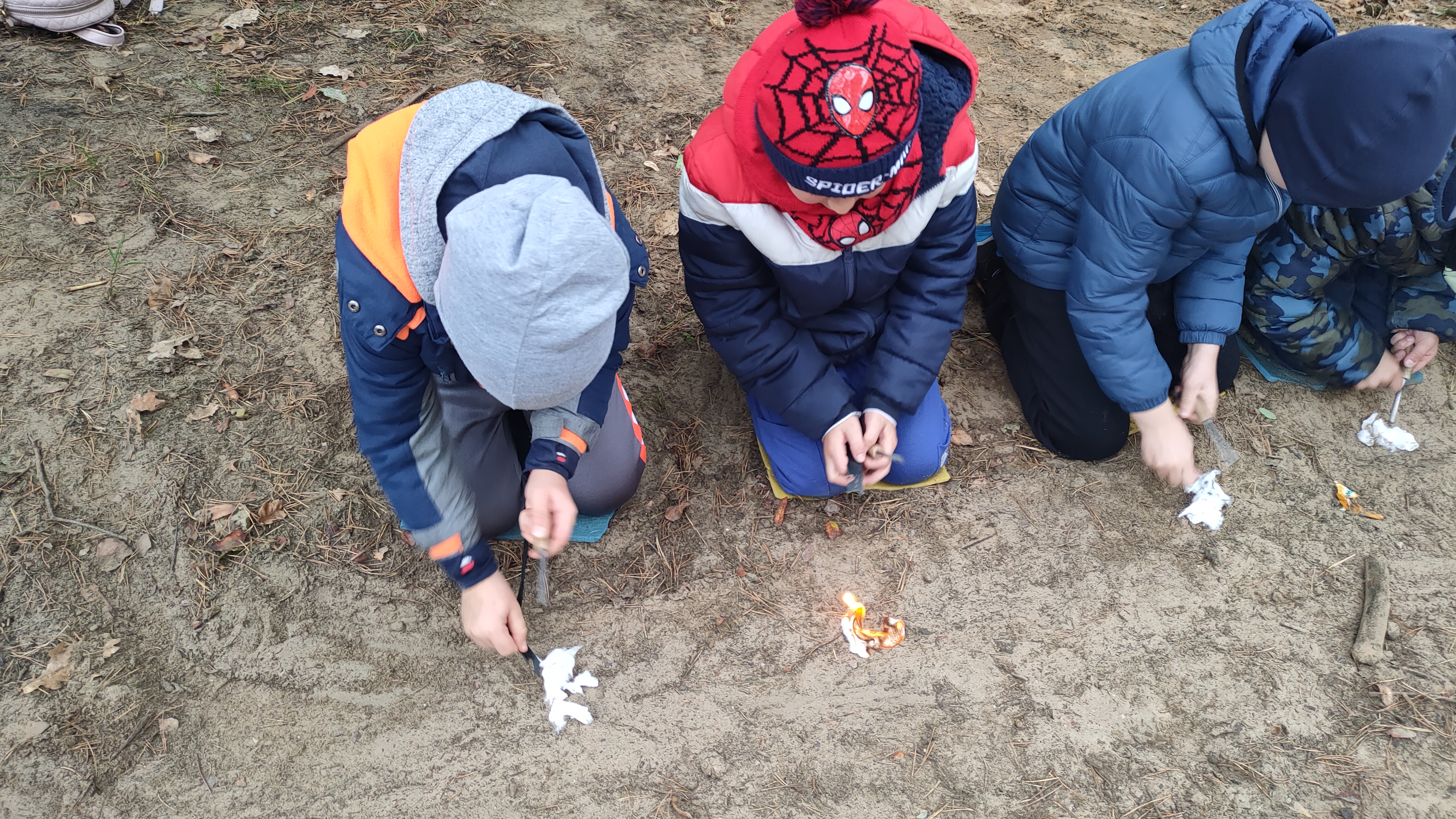 Największe emocje wzbudziła nauka korzystania z krzesiwa – dzieci samodzielnie podpalały waciki i czuły się jak prawdziwi odkrywcy!