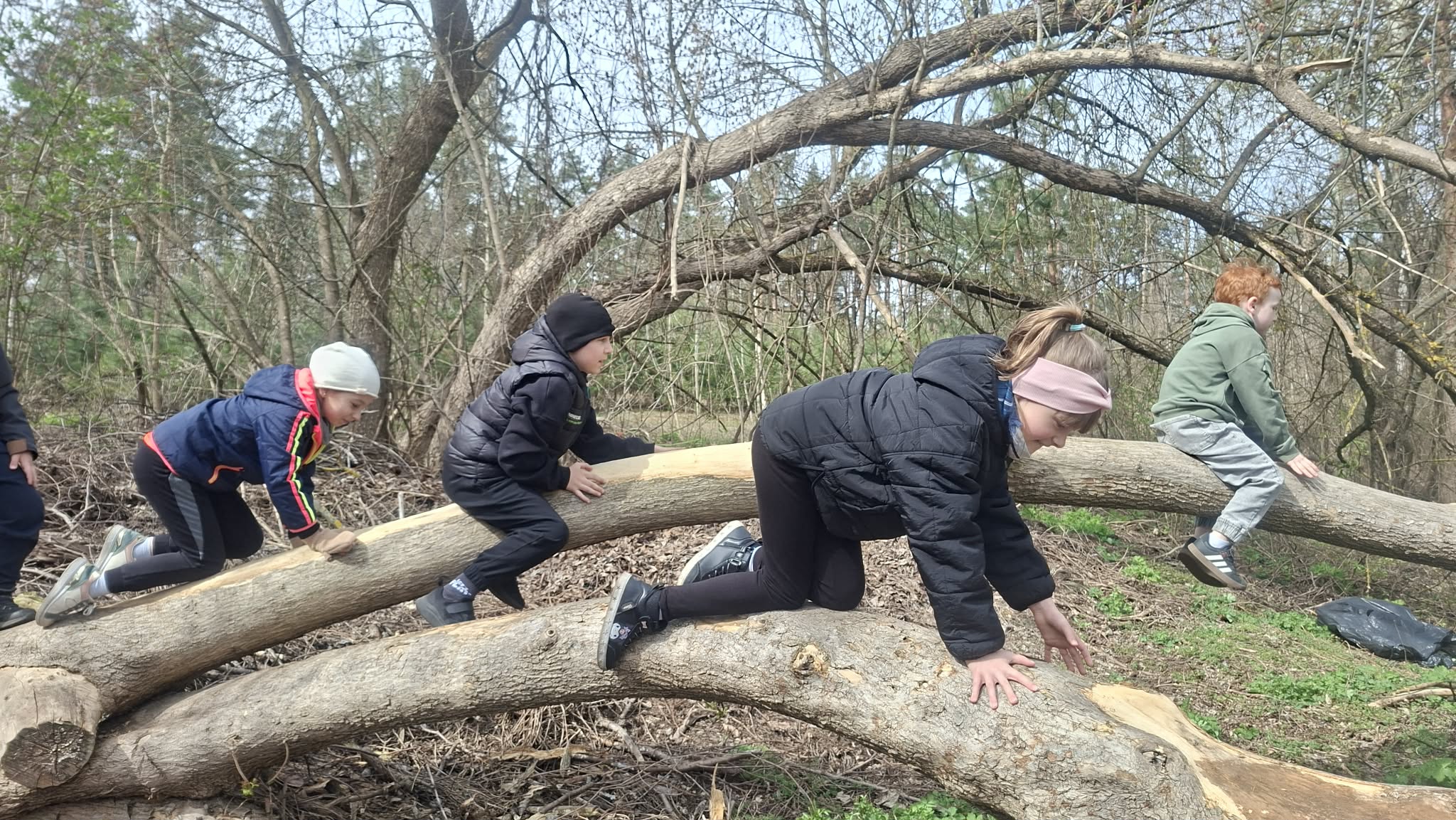 Podczas zajęć ćwiczyły swoją sprawność fizyczną, wspinając się na drzewa oraz rozwijając koordynację i równowagę. Nie zabrakło także toru przeszkód, który dostarczył wielu emocji i radości. Uczniowie próbowali swoich sił w przechodzeniu po linie, korzystali z huśtawki oraz uczyli się zręczności przy struganiu kijka.
