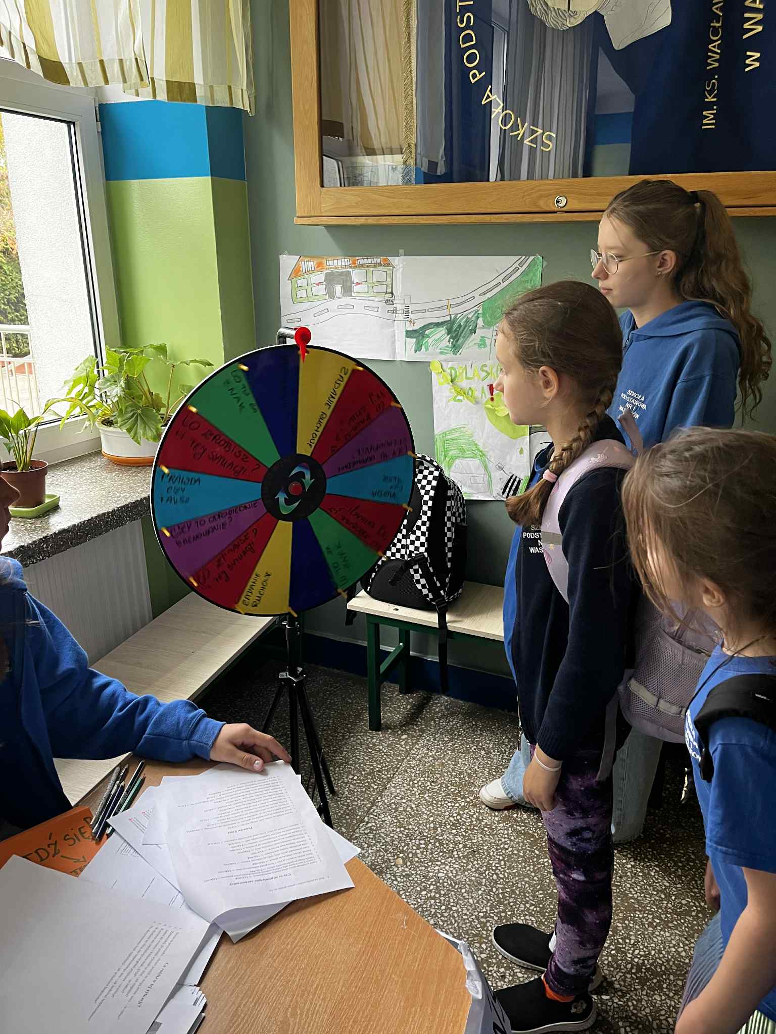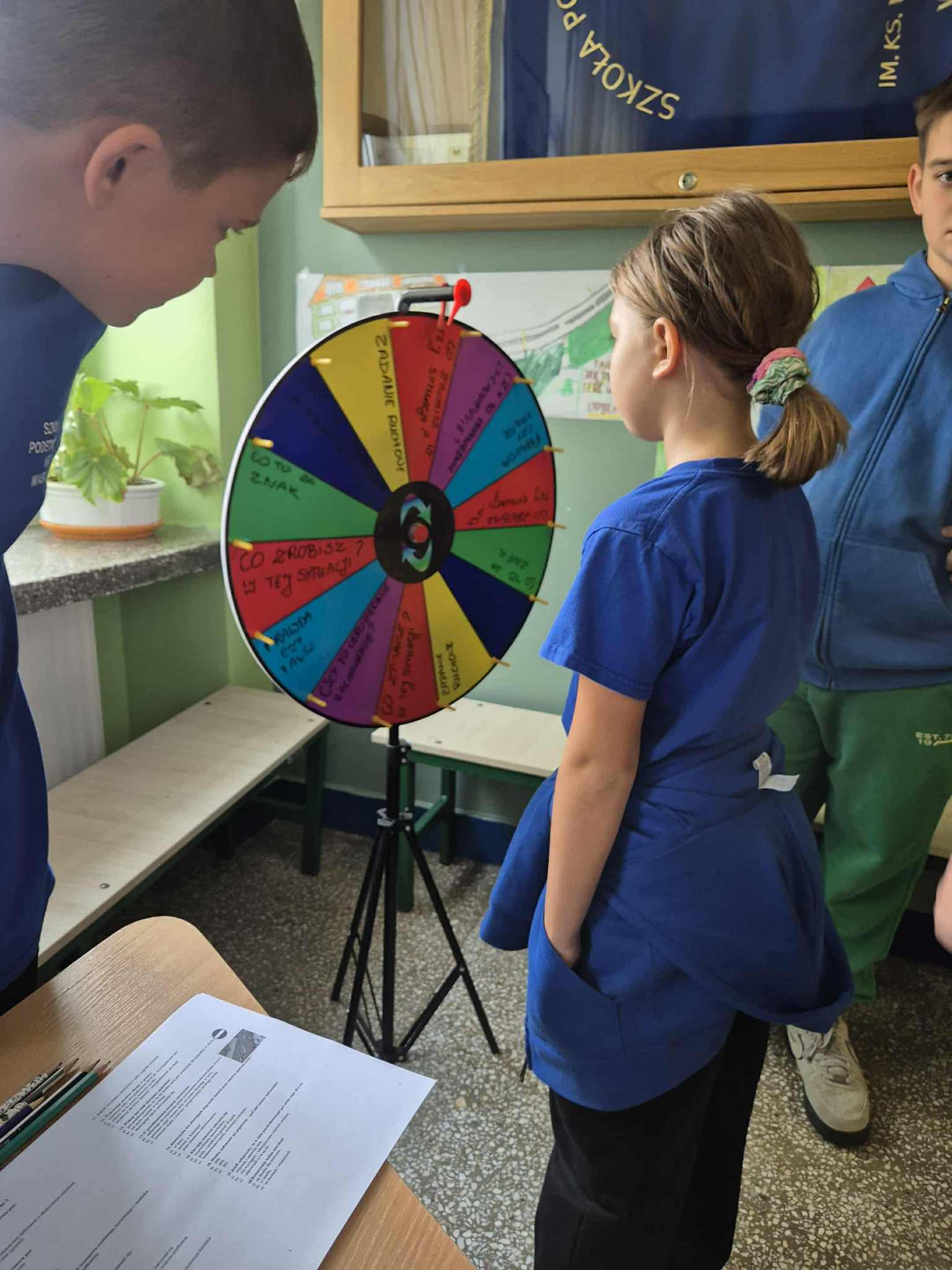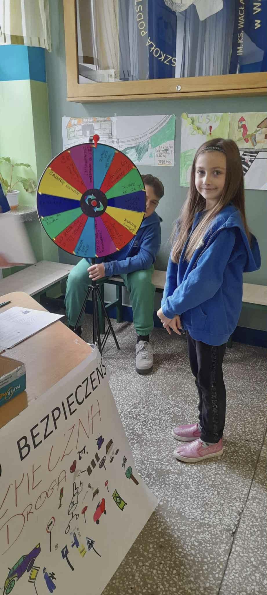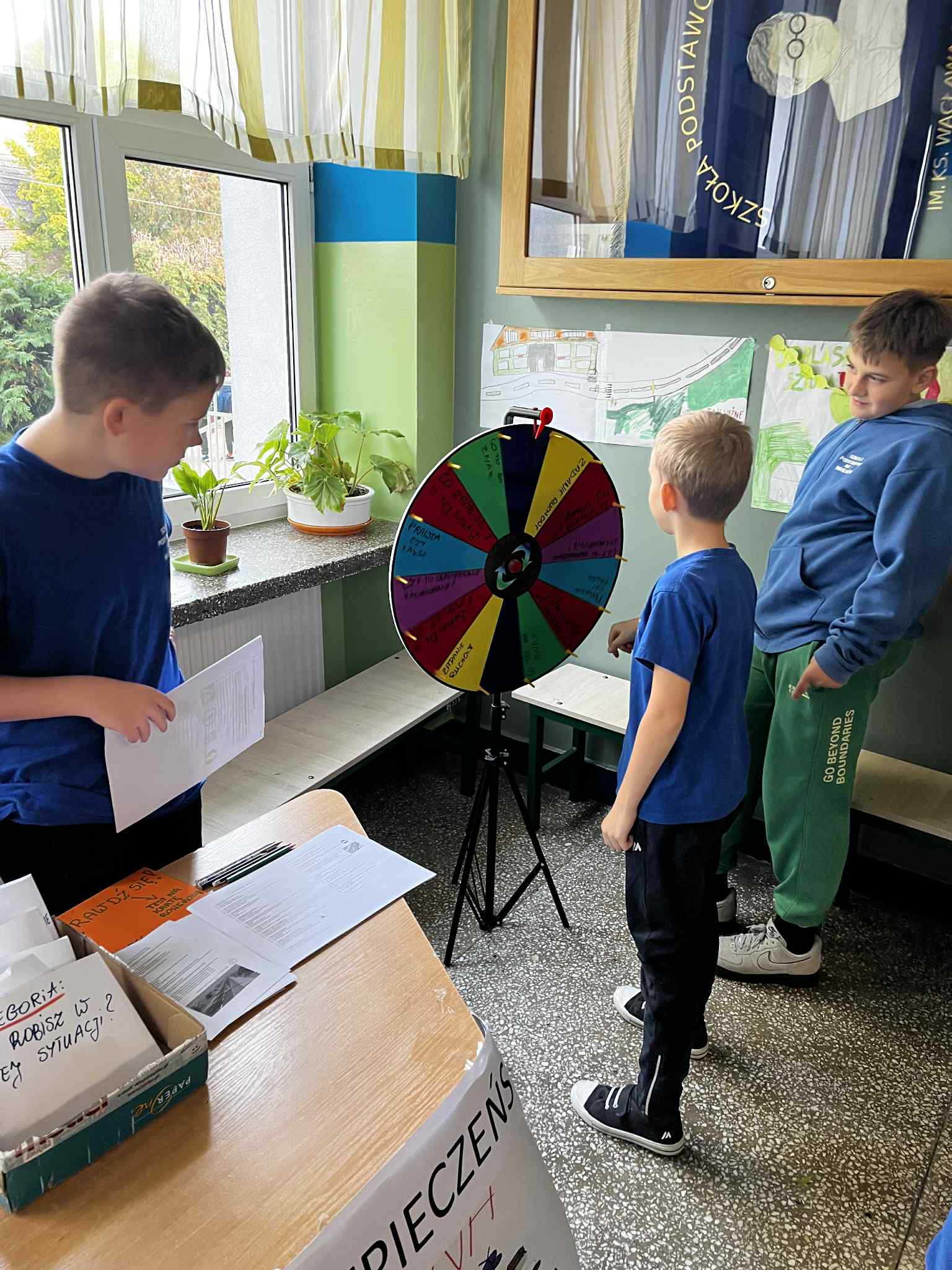 W ramach konkursu „Odblaskowa Szkoła” przygotowaliśmy specjalne stoisko, przy którym najmłodsi uczniowie mogli zakręcić kołem fortuny i sprawdzić swoją wiedzę na temat bezpieczeństwa w ruchu drogowym. Każde pytanie było świetną okazją, by przypomnieć sobie zasady bezpiecznego poruszania się po drodze, a także znaczenie noszenia elementów odblaskowych.