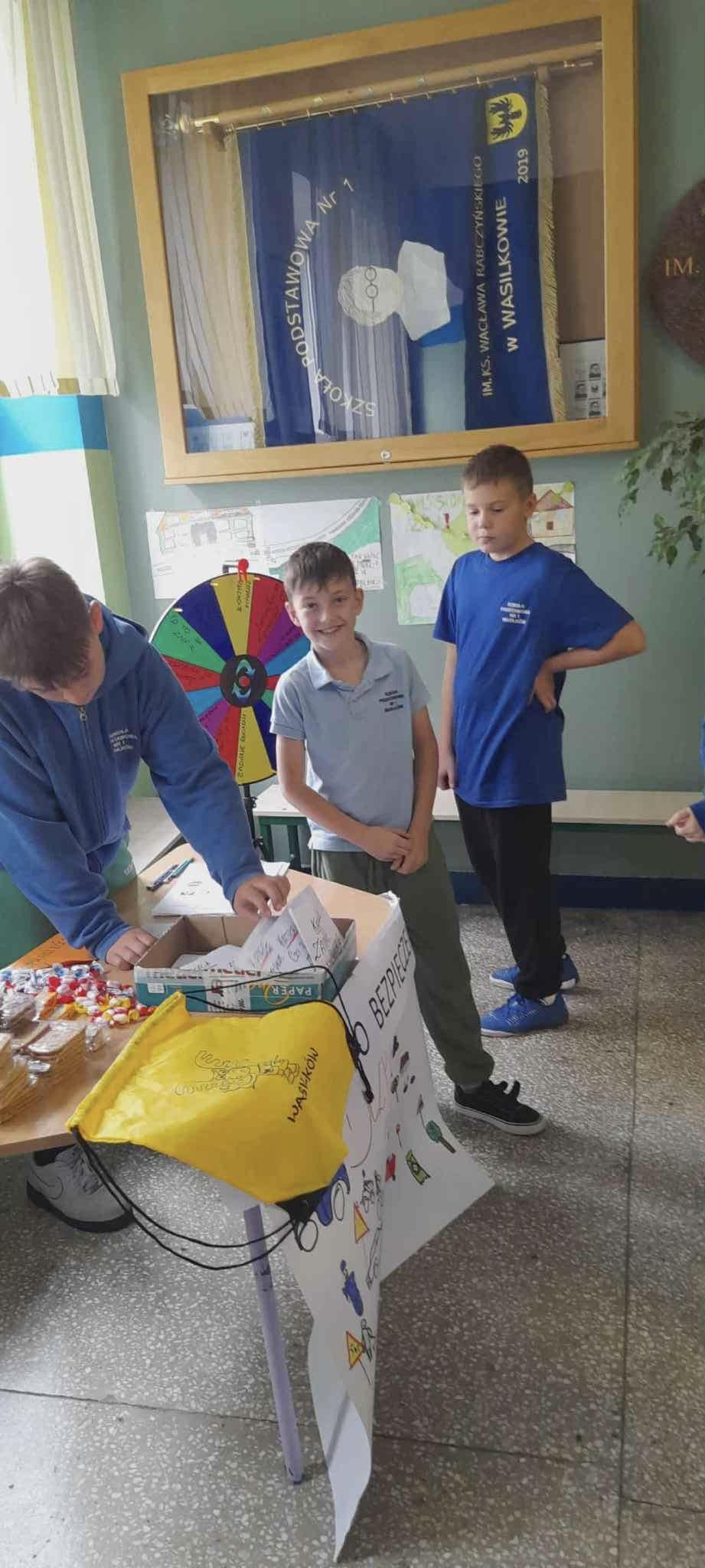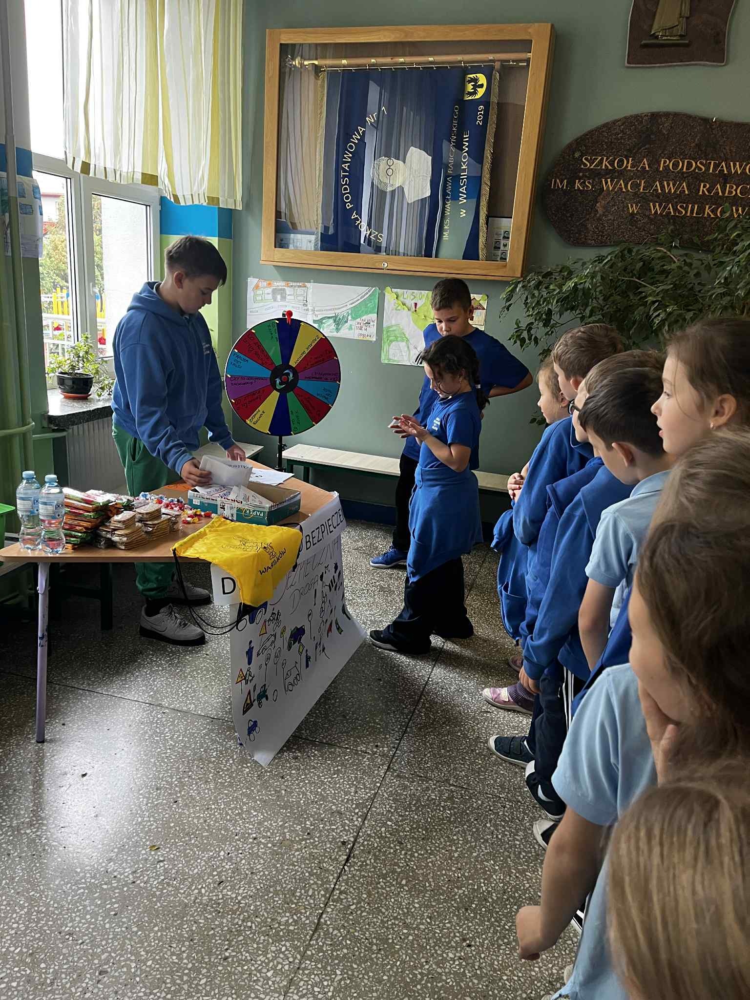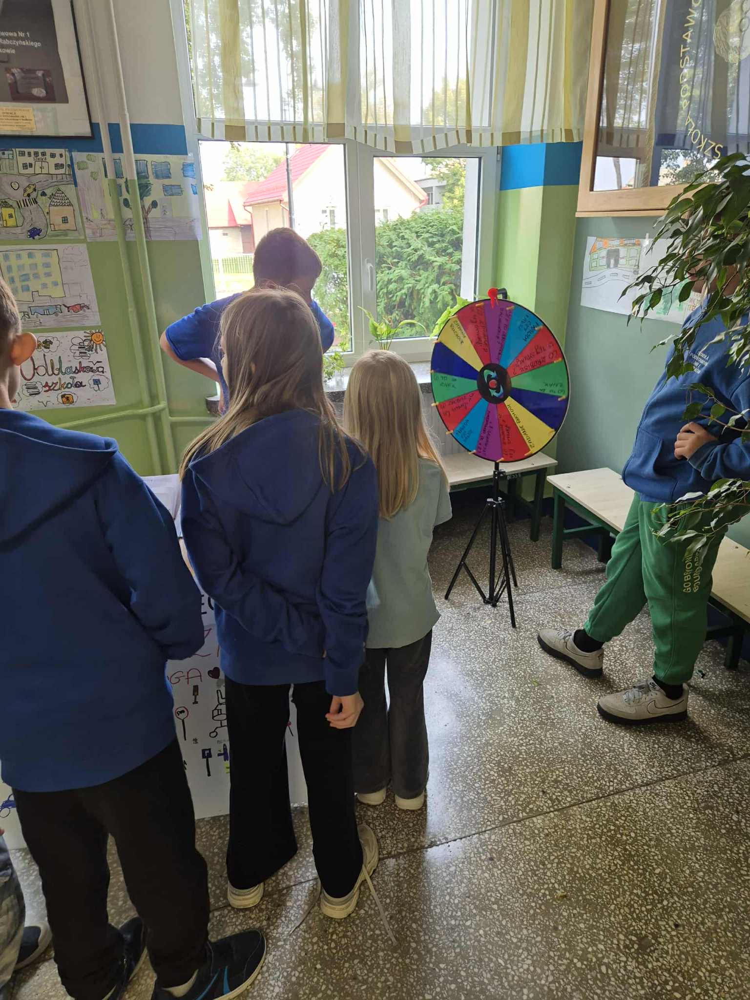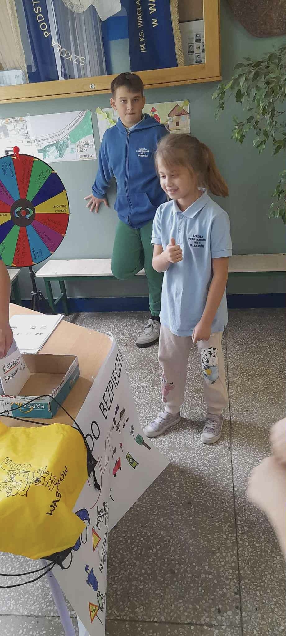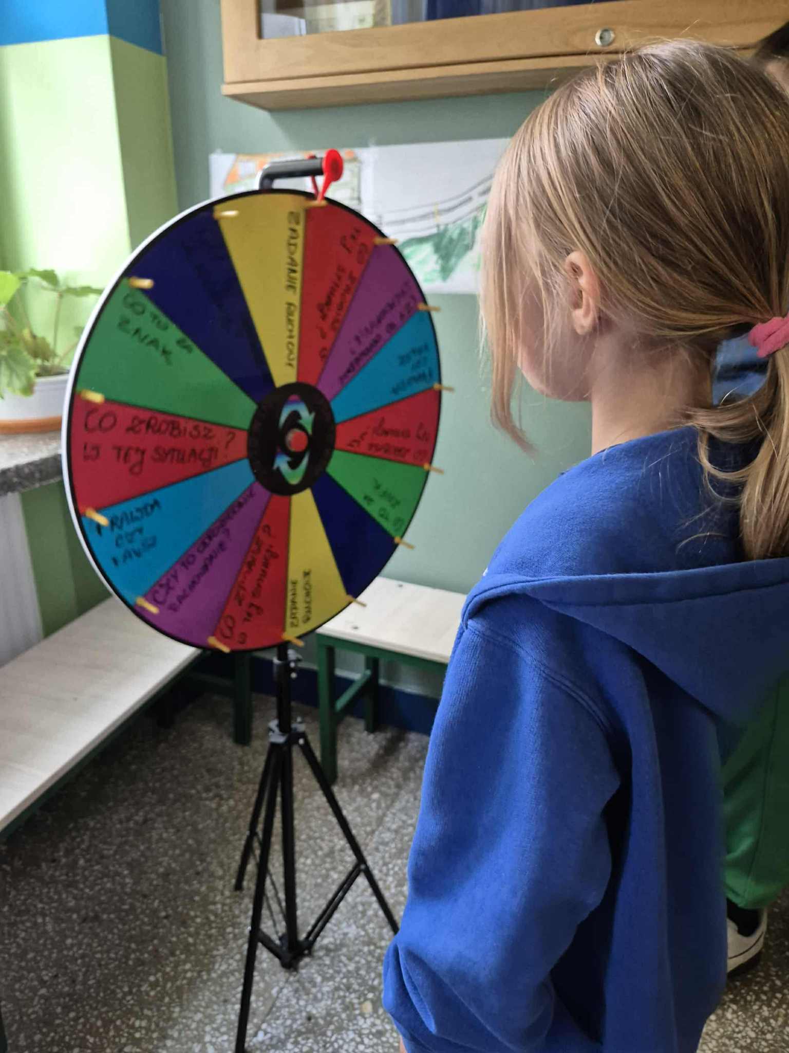 W ramach konkursu „Odblaskowa Szkoła” przygotowaliśmy specjalne stoisko, przy którym najmłodsi uczniowie mogli zakręcić kołem fortuny i sprawdzić swoją wiedzę na temat bezpieczeństwa w ruchu drogowym. Każde pytanie było świetną okazją, by przypomnieć sobie zasady bezpiecznego poruszania się po drodze, a także znaczenie noszenia elementów odblaskowych.