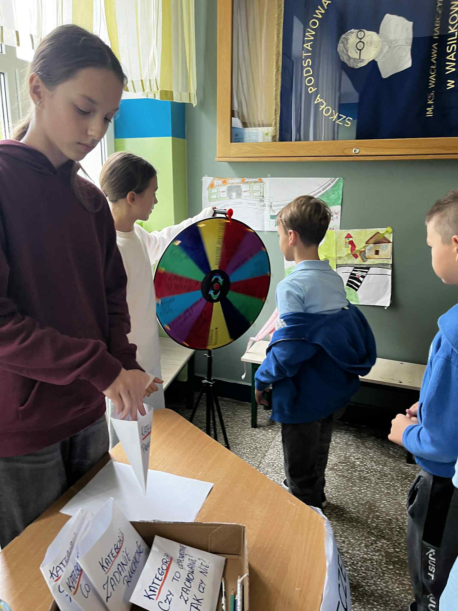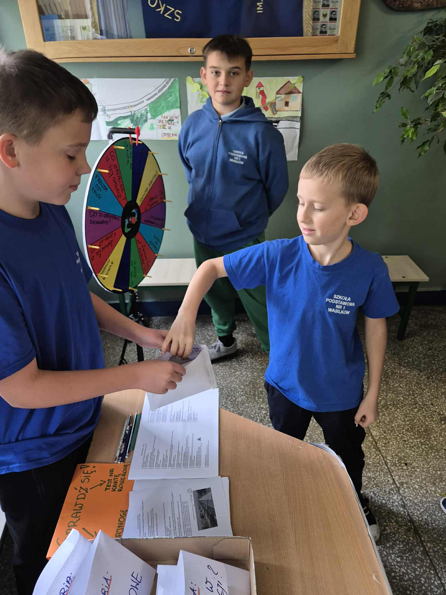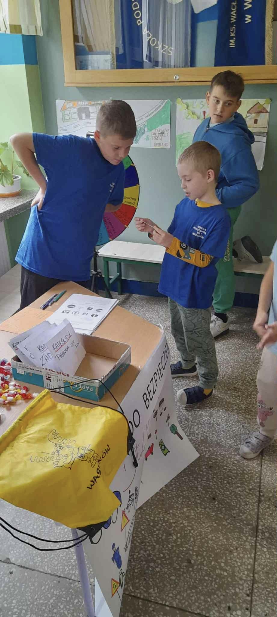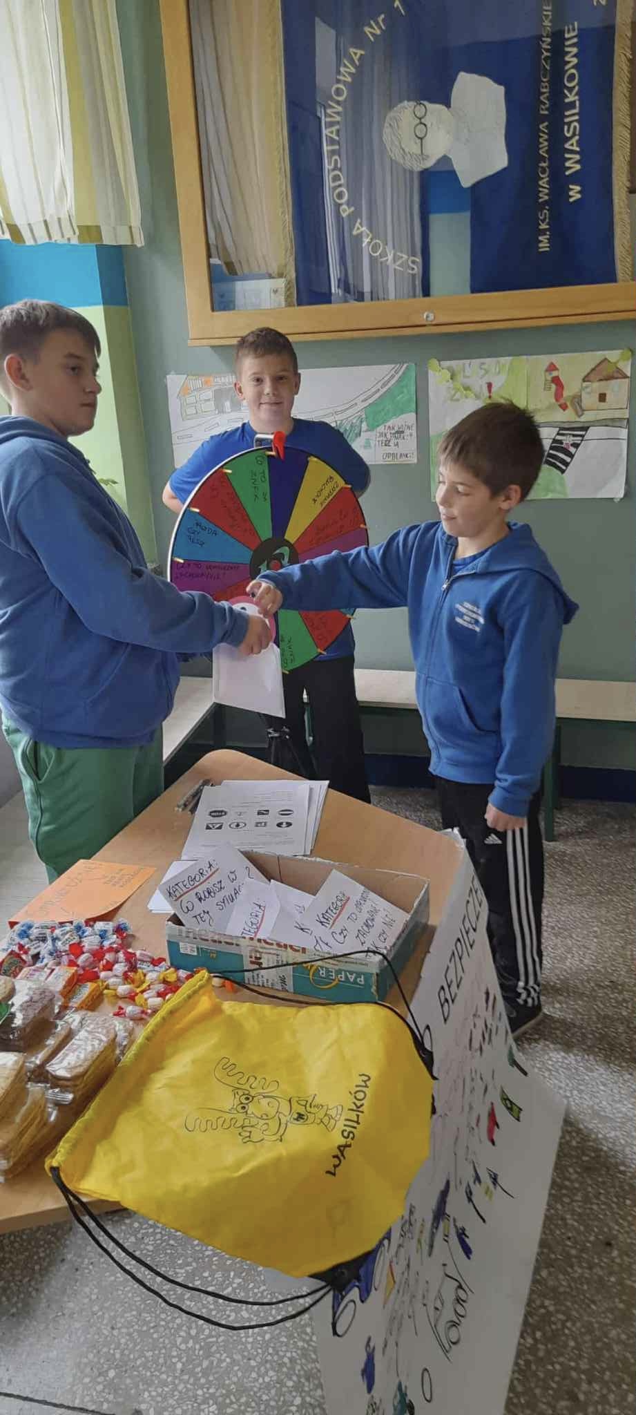 W ramach konkursu „Odblaskowa Szkoła” przygotowaliśmy specjalne stoisko, przy którym najmłodsi uczniowie mogli zakręcić kołem fortuny i sprawdzić swoją wiedzę na temat bezpieczeństwa w ruchu drogowym. Każde pytanie było świetną okazją, by przypomnieć sobie zasady bezpiecznego poruszania się po drodze, a także znaczenie noszenia elementów odblaskowych.
