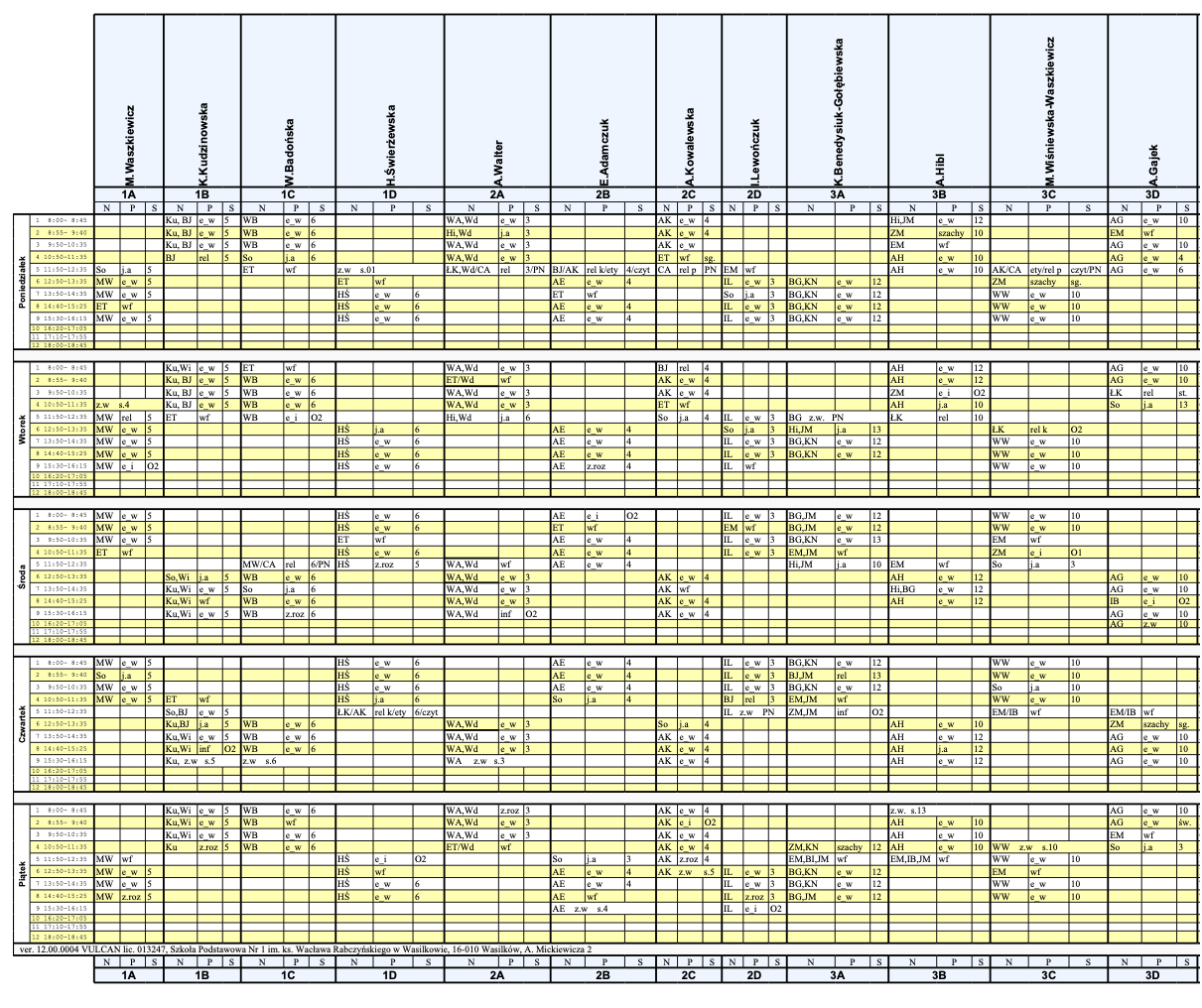 Plan lekcji na rok szkolny 2025/2026 semestr II