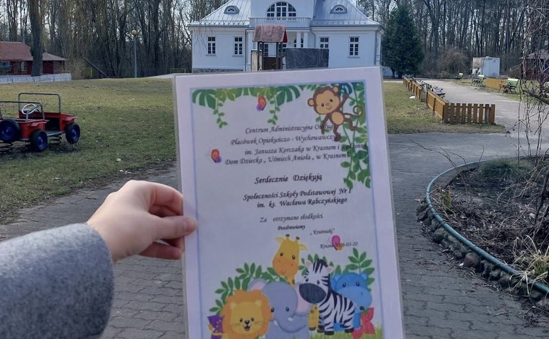 Szkolne Koło Wolontariatu przy Szkole Podstawowej nr 1 im. Ks. W. Rabczyńskiego składa najserdeczniejsze podziękowania całej społeczności szkolnej – Rodzicom, Uczniom oraz Nauczycielom – za aktywny udział w zbiórce słodyczy na rzecz Domu Dziecka w Krasnem.