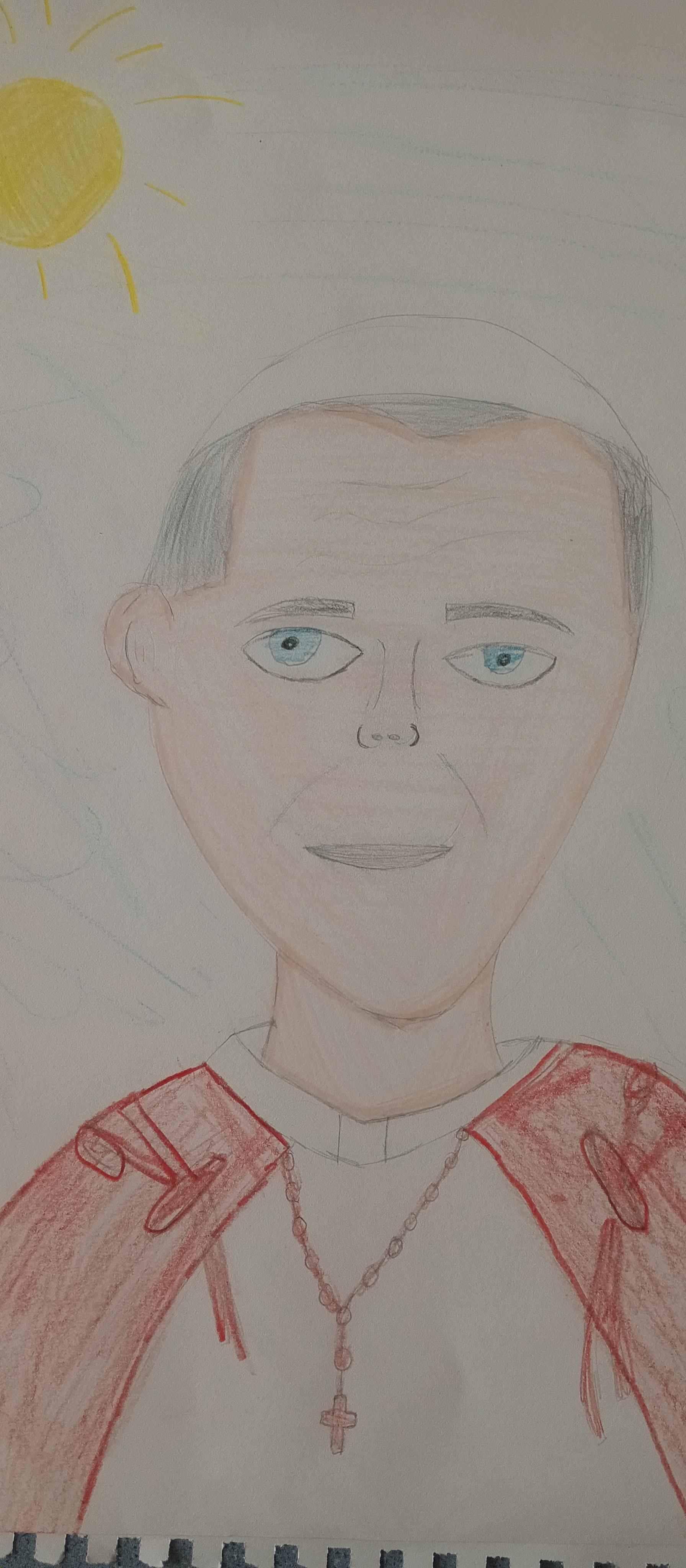 2 kwietnia w sposób szczególny wspominamy postać Jana Pawła Il. Uczniowie klasy 5a wykonali portrety z wizerunkiem Ojca Świętego, akcentując atrybuty zwierzchnictwa Kościoła. Inni zaś zwrócili uwagę na sportowe zainteresowania papieża.