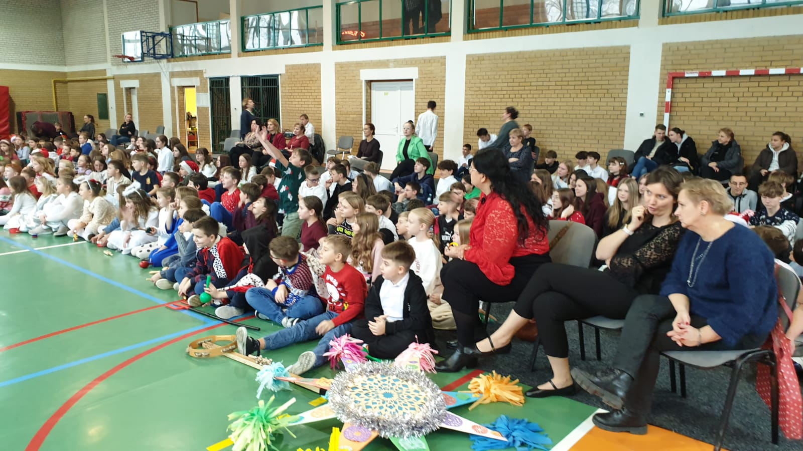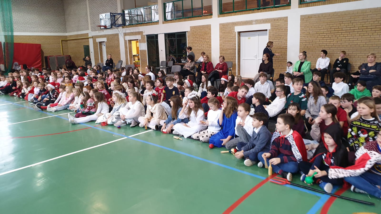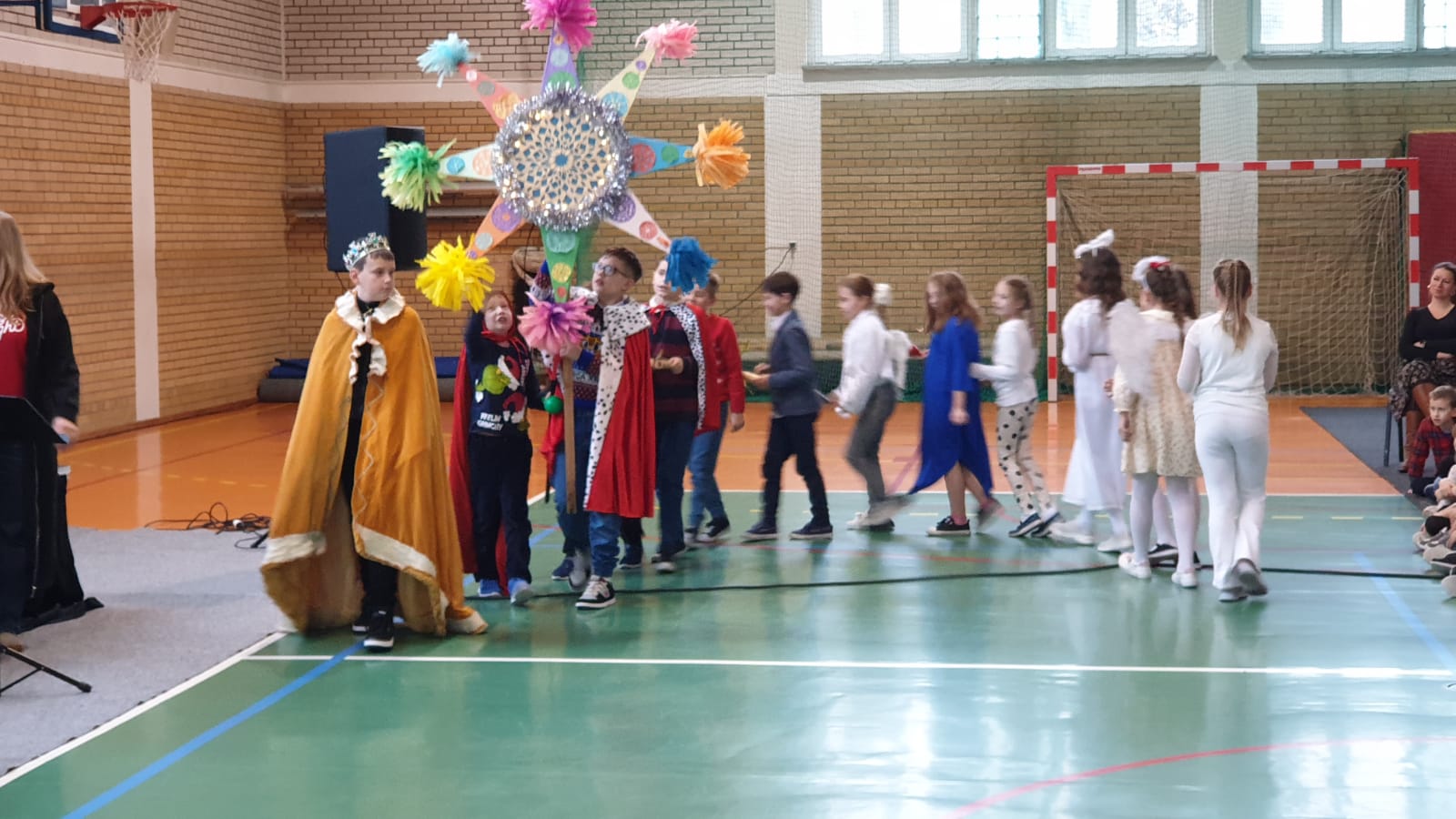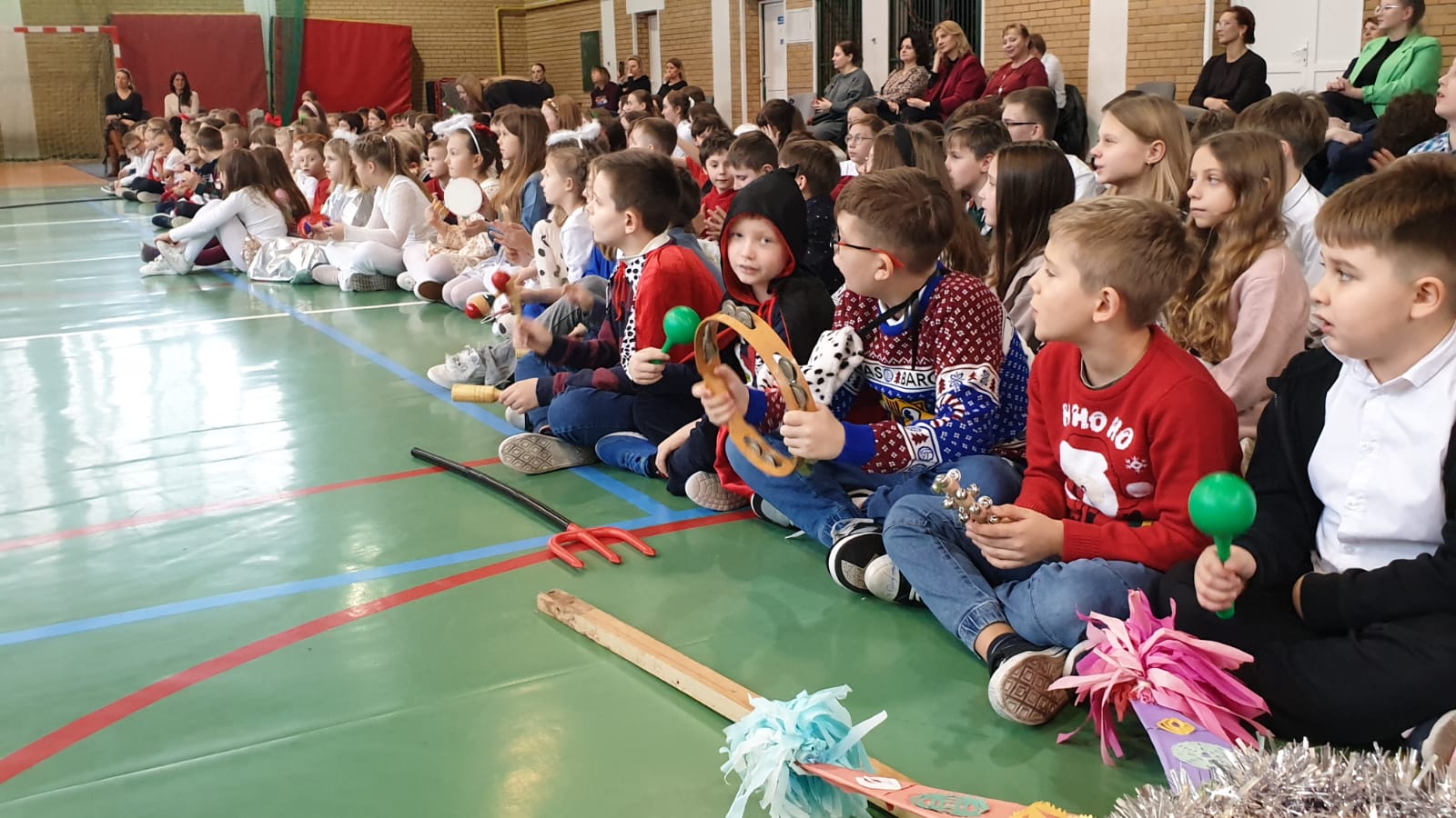 W tym przedświątecznym czasie uczniowie, nauczyciele oraz pracownicy administracji i obsługi naszej szkoły, uczestniczyli w pokazie świątecznego musicalu "Tylko jedna jest taka noc...". Na widowni nie zabrakło też bliskich naszych muzycznych aktorów. W ten spektakl, z wielkim zaangażowaniem, włączyli się widzowie - uczniowie wszystkich klas. Specjalną rolę miała klasa 3A, wraz z panią Kasią i panią Kingą. To właśnie ci uczniowie dzielnie towarzyszyli występującym, kolędując z gwiazdą i grając na instrumentach perkusyjnych. Muzyczni tegoroczni aktorzy to uczniowie z klasy 3A, 4A i 4B, 5B oraz z 7A i 7B.