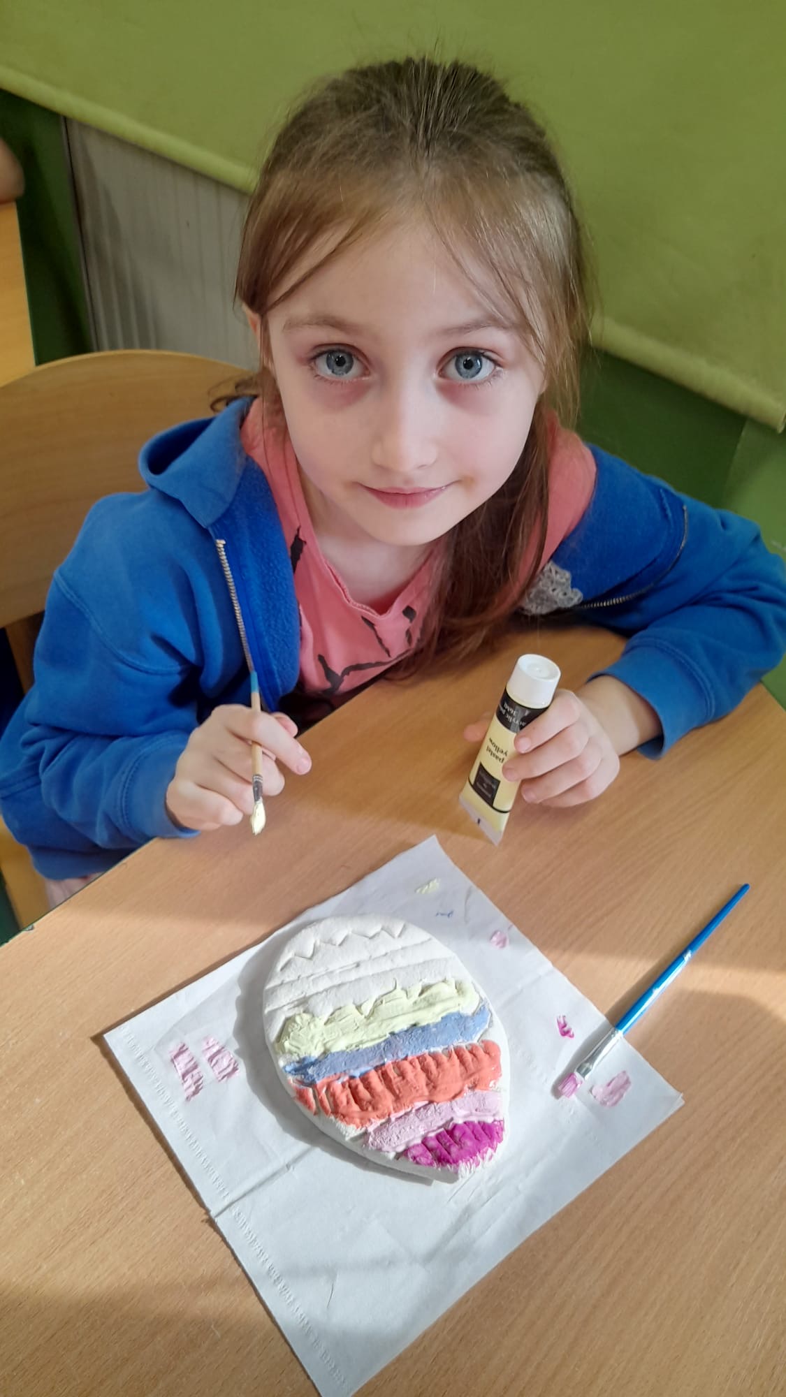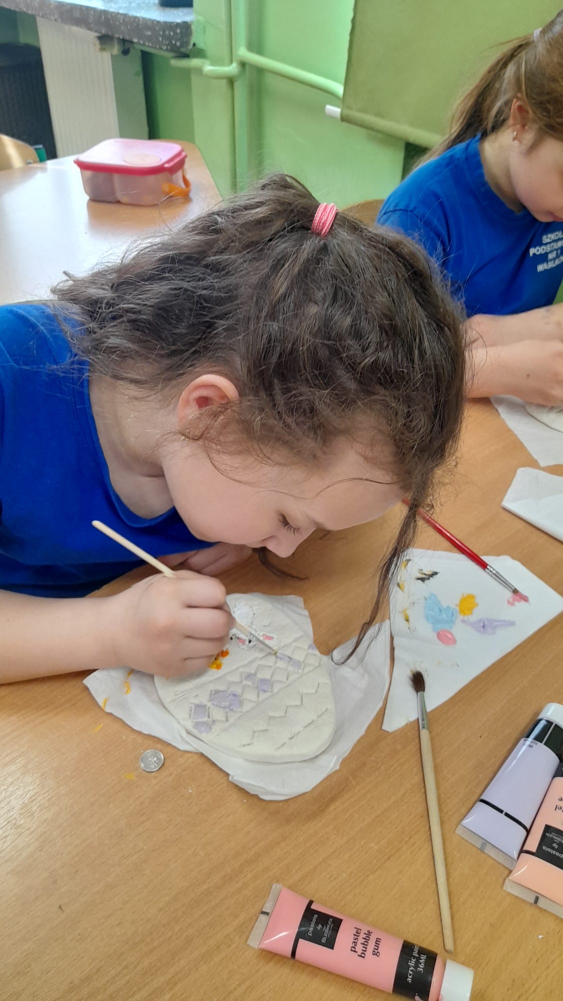 Uczniowie z ogromnym zaangażowaniem tworzyli i ozdabiali pisanki z masy solnej. Każda praca była wyjątkowa, pełna kolorów i kreatywnych pomysłów. To nie tylko świetna zabawa, ale także doskonała okazja do rozwijania zdolności manualnych i wyobraźni.