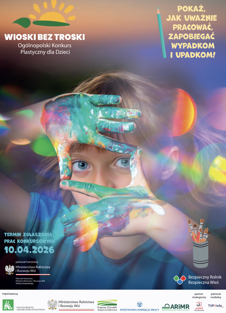 Prace należy przesłać do 10 kwietnia 2026 r. do najbliższej Placówki Terenowej lub Oddziału Regionalnego KRUS. Konkurs przebiega w dwóch etapach: regionalnym i wojewódzkim, a na każdym z nich przewidziano atrakcyjne nagrody i upominki. Na laureatów czekają cenne nagrody, a ich prace będą publikowane również w materiałach popularyzatorskich Kasy. Więcej informacji, regulamin konkursu oraz formularz zgłoszeniowy dostępne są w Placówkach Terenowych KRUS, Oddziale Regionalnym KRUS w Białymstoku oraz na stronie internetowej www.gov.pl/krus.