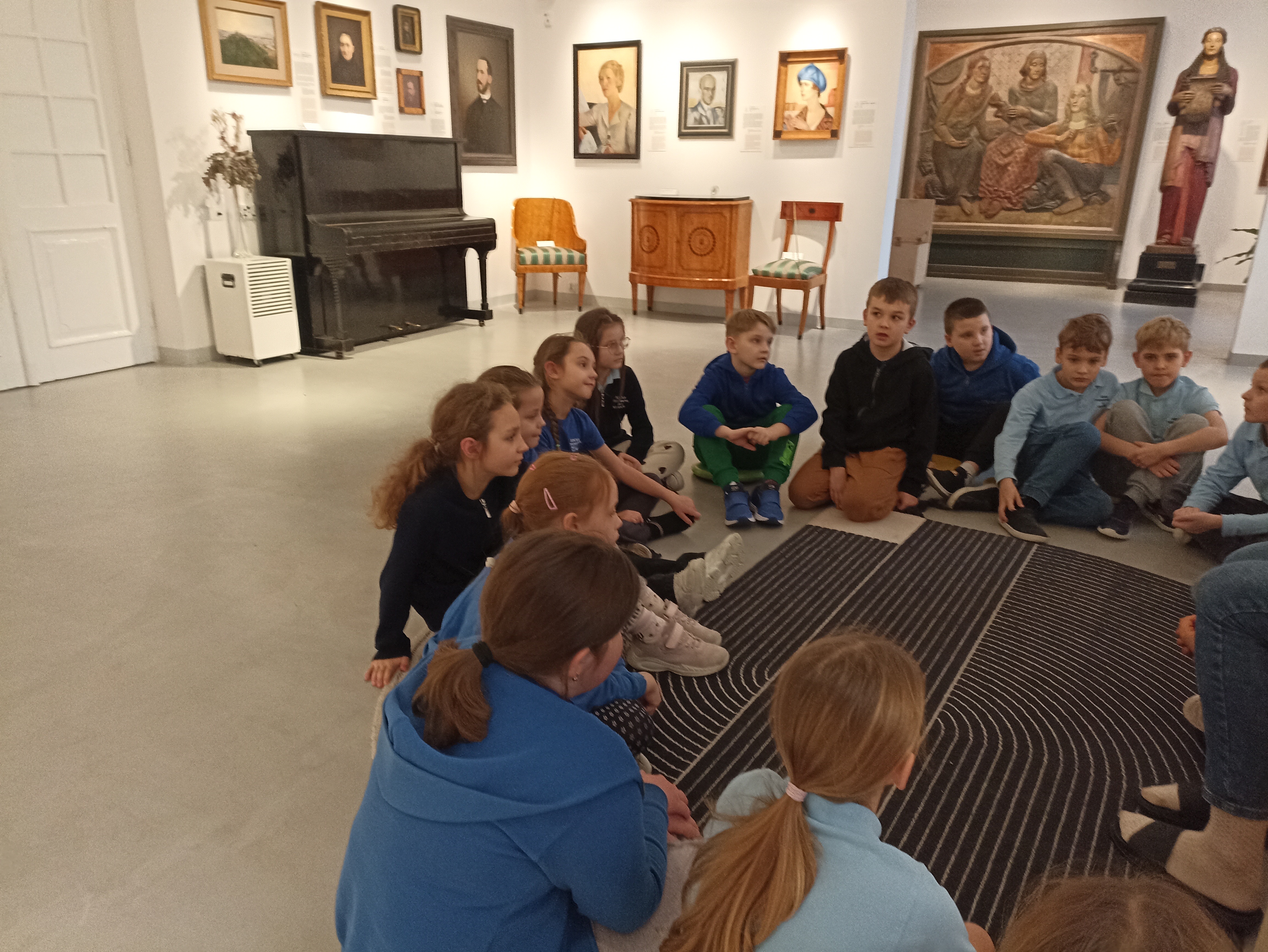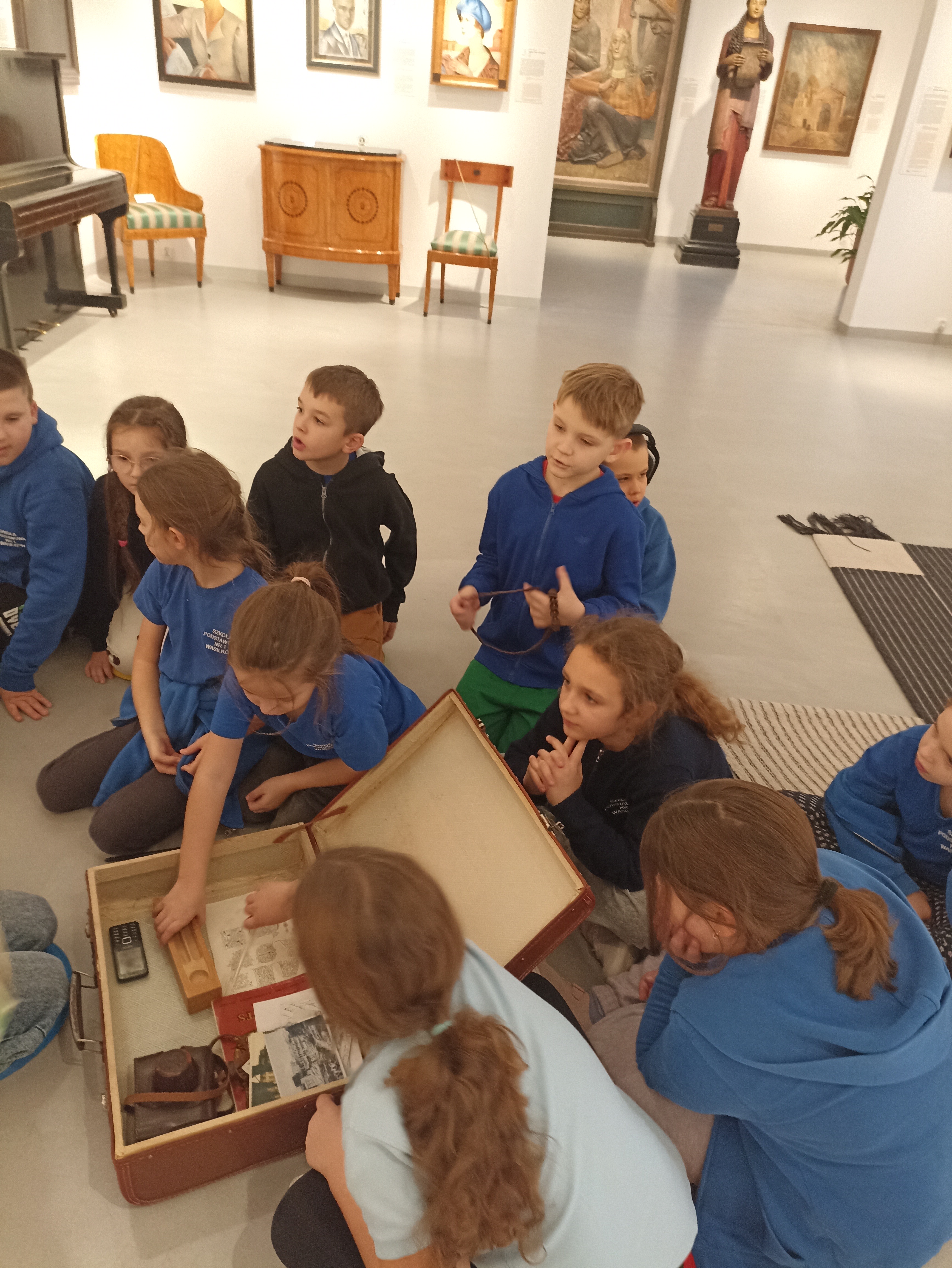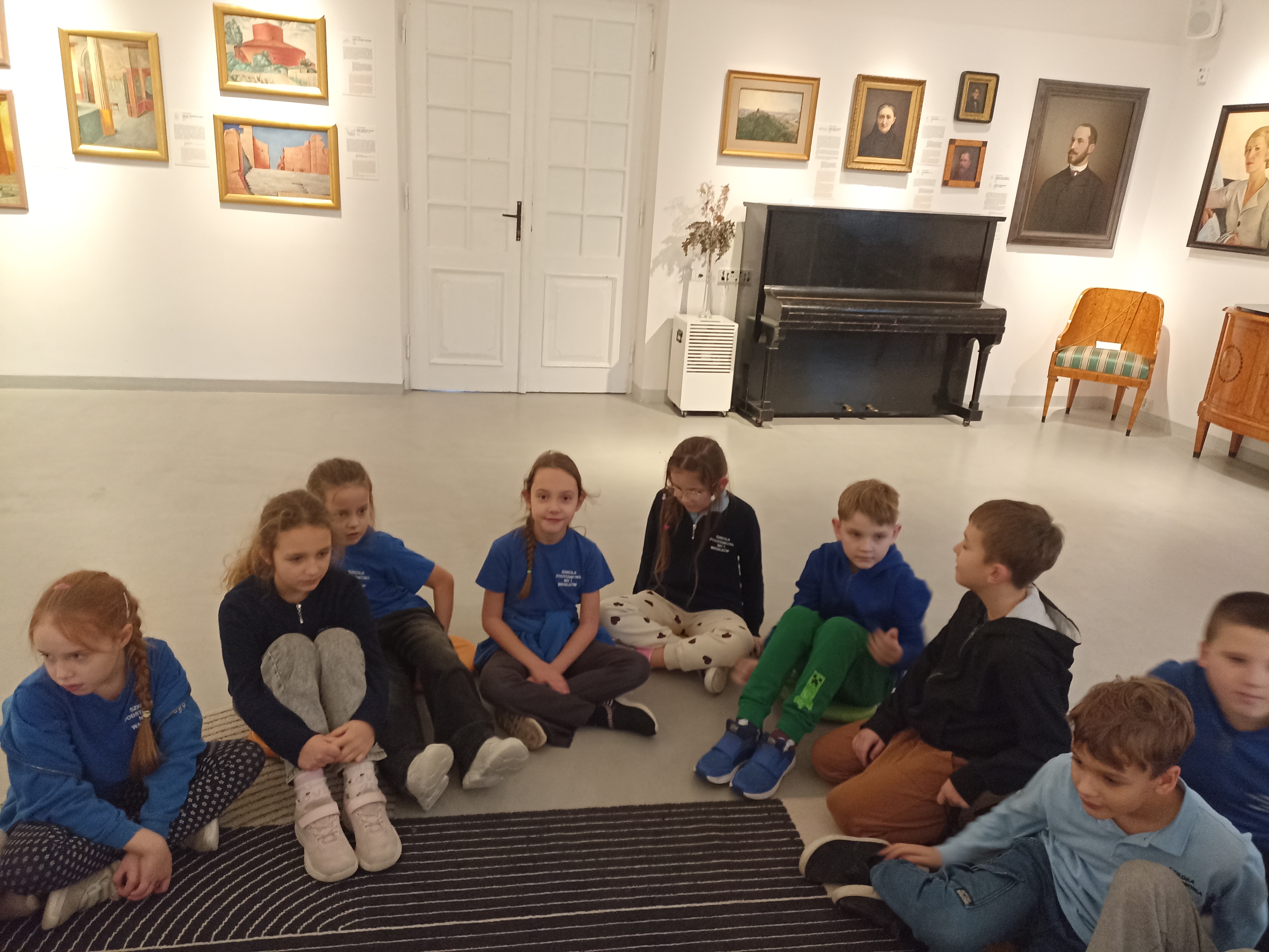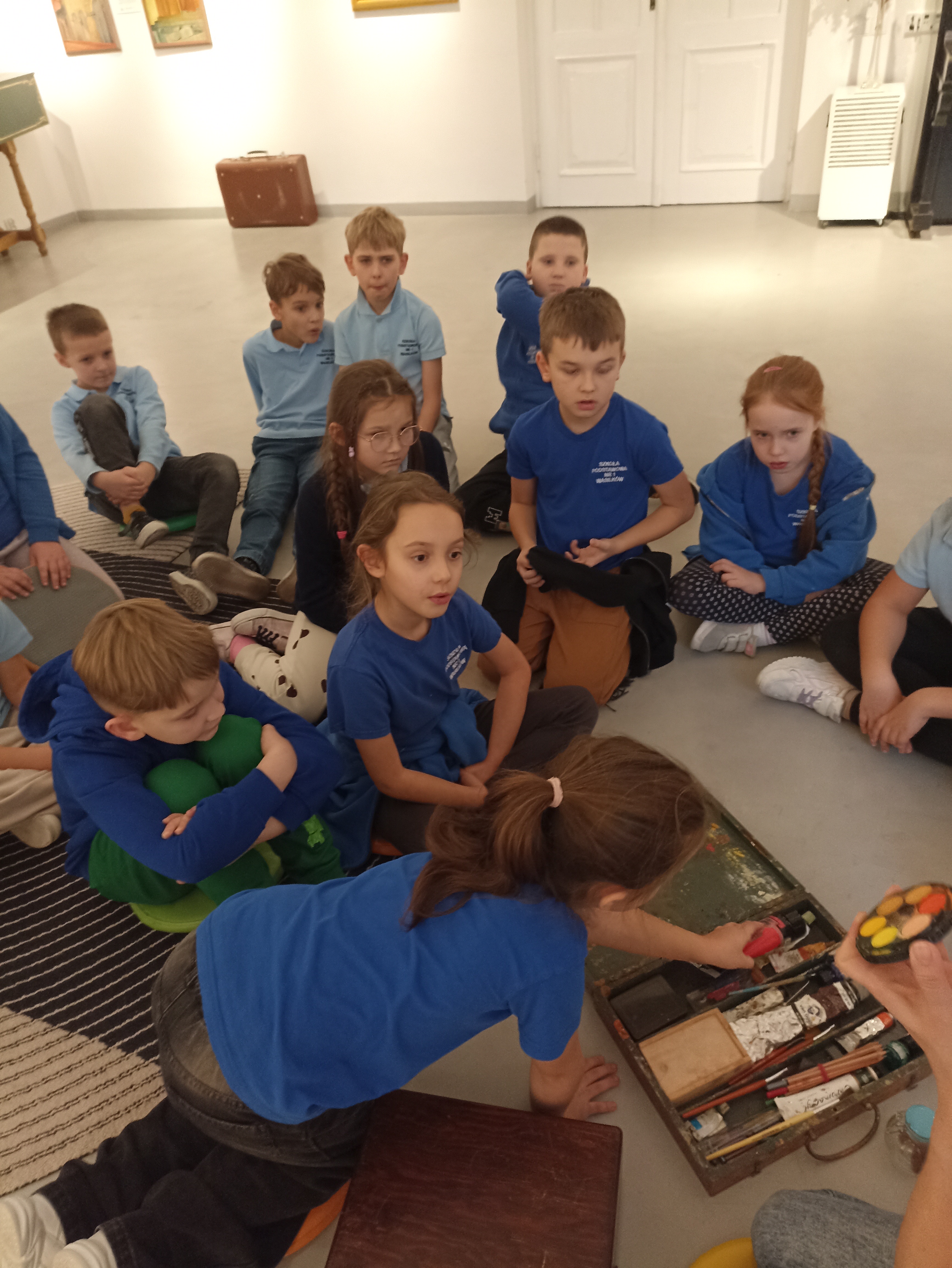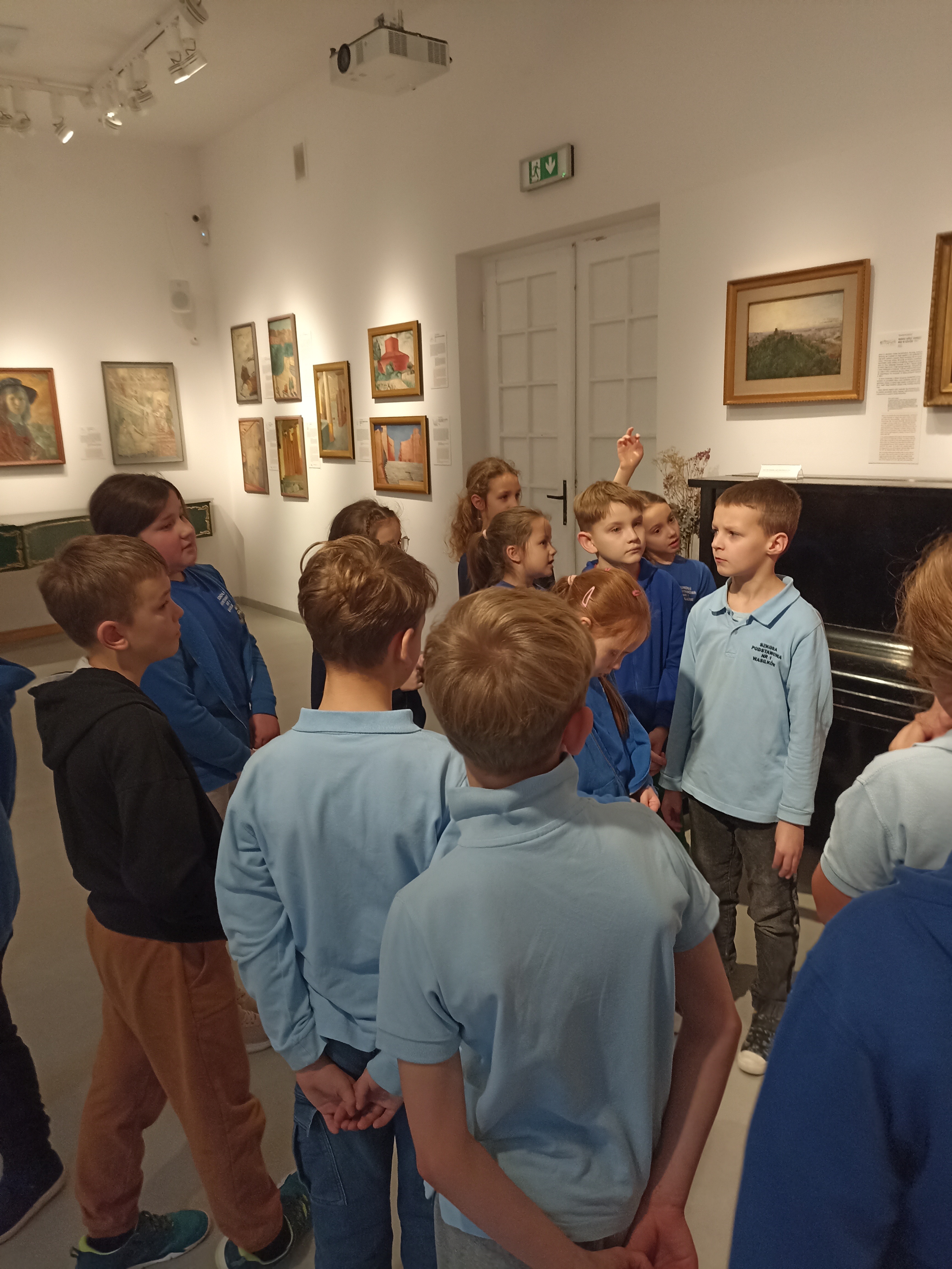 Uczniowie klasy 2a kolejną „lekcję plastyki” w Galerii Sleńdzińskich mają już za sobą. Podczas godzinnej wizyty mieliśmy okazję poznać uzdolnionych artystycznie członków rodu Sleńdzińskich. Zobaczyć wiele przepięknych dzieł, które stworzył pan Ludomir Sleńdziński, podziwiać stare instrumenty, na których grała jego córka – Julita. W trakcie spotkania dowiedzieliśmy się czym różni się rzeźba od płaskorzeźby, co to jest portret, autoportret, pejzaż czy martwa natura, a także jakie przeszkody musi pokonać artysta aby stworzyć dzieło sztuki.